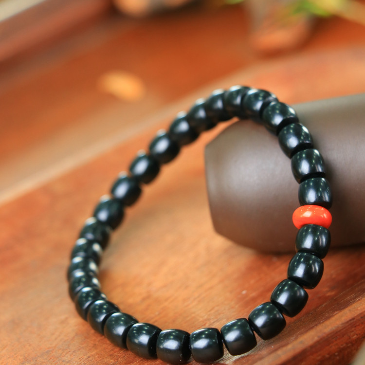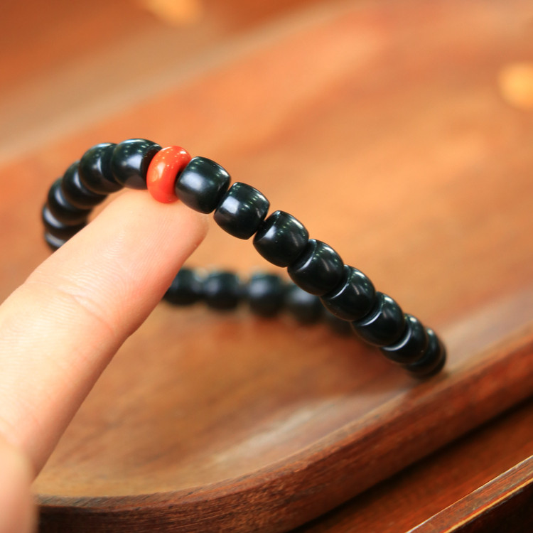 天然新疆和田玉山料墨玉老型珠手串手链古风男女手饰收藏高档礼品