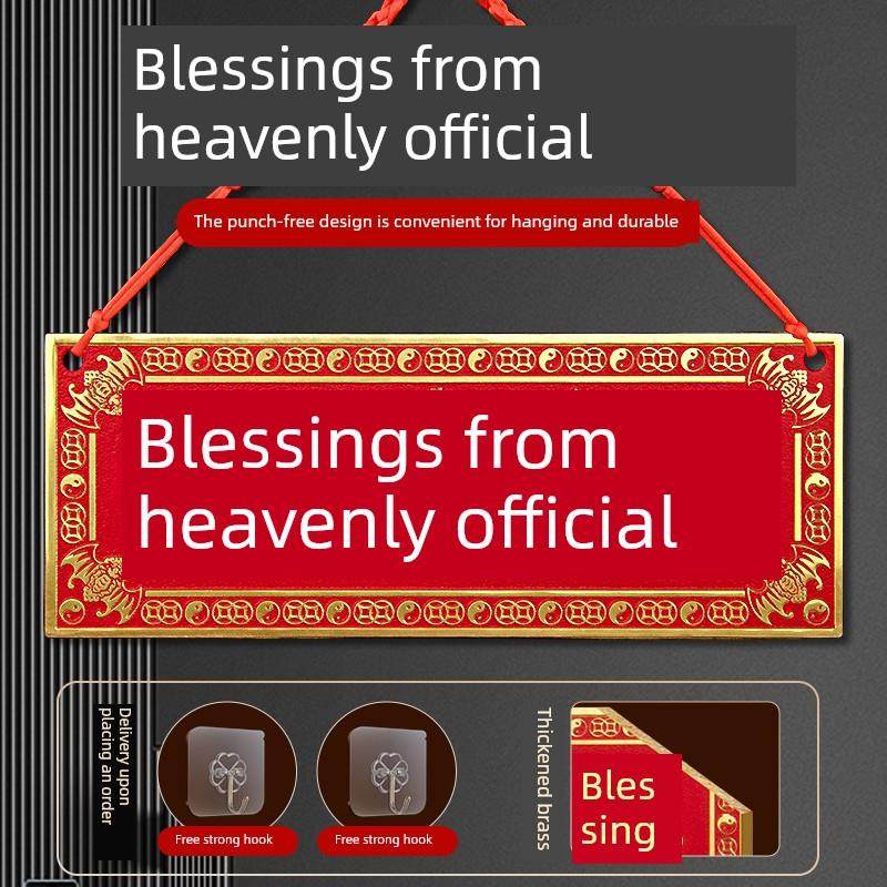 全铜天官赐福朱砂门贴挂件加厚黄铜牌匾入户门对邻居大门对门卧室
