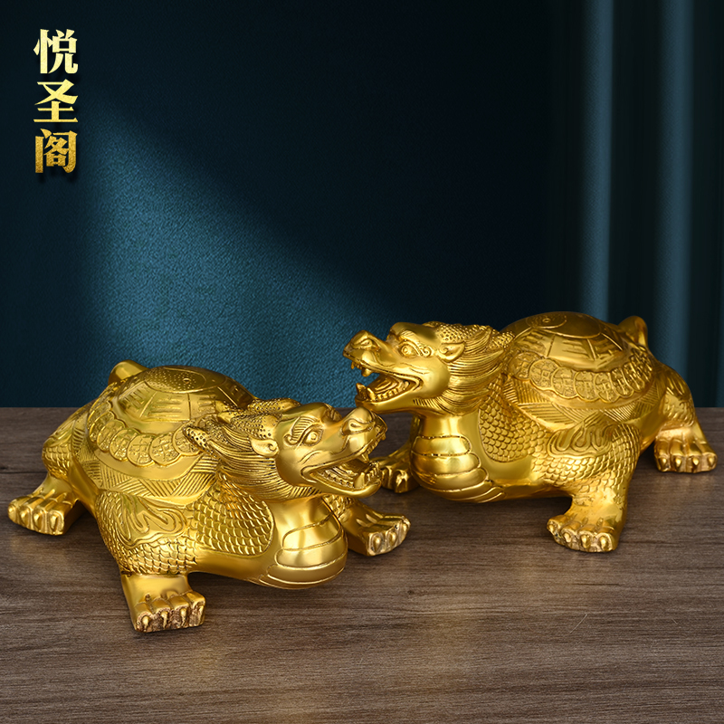黄铜八卦龙龟摆件龙头龟一对客厅办公室龙龟装饰品摆设玄关桌面
