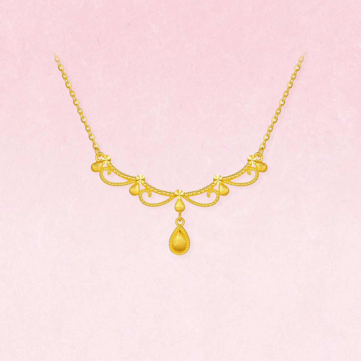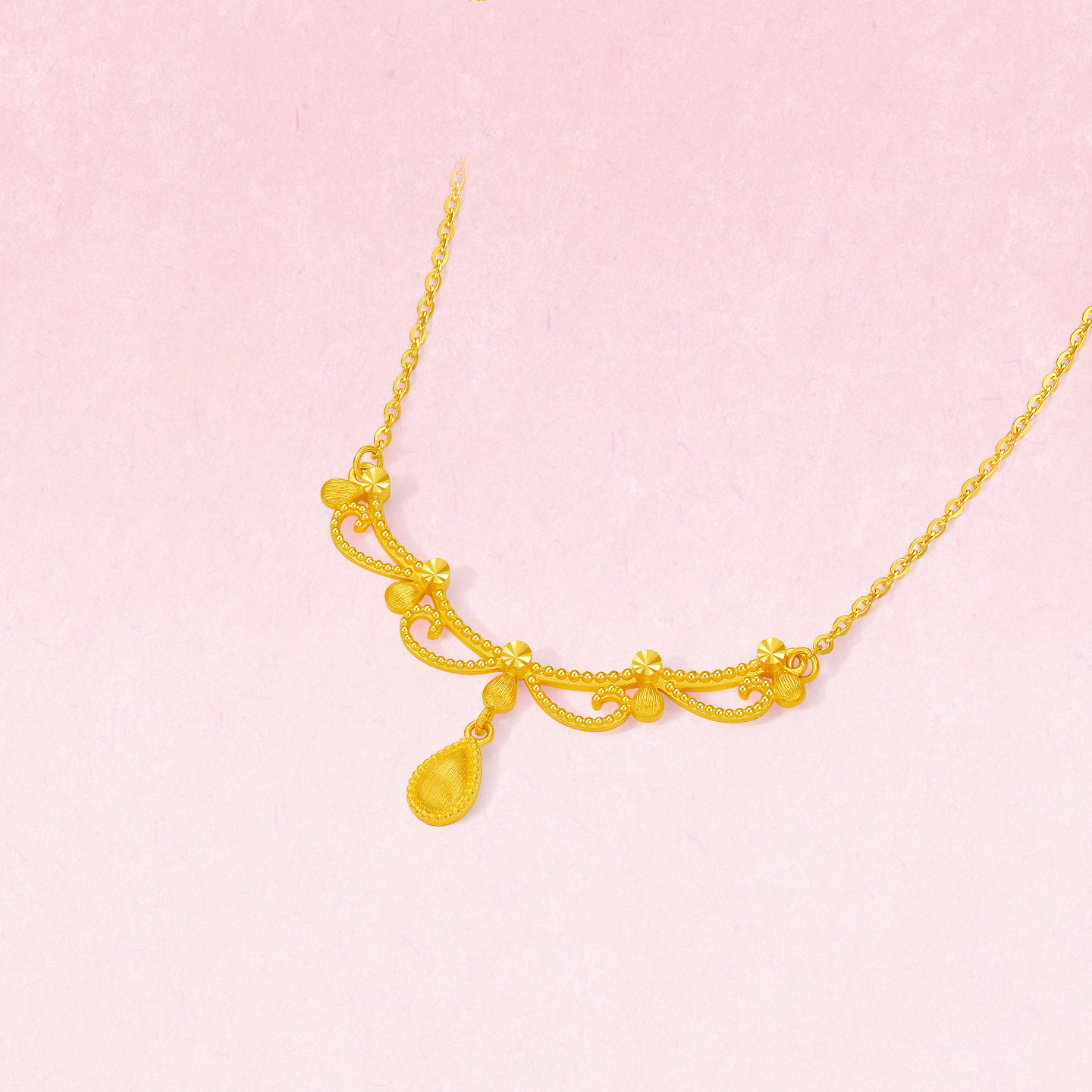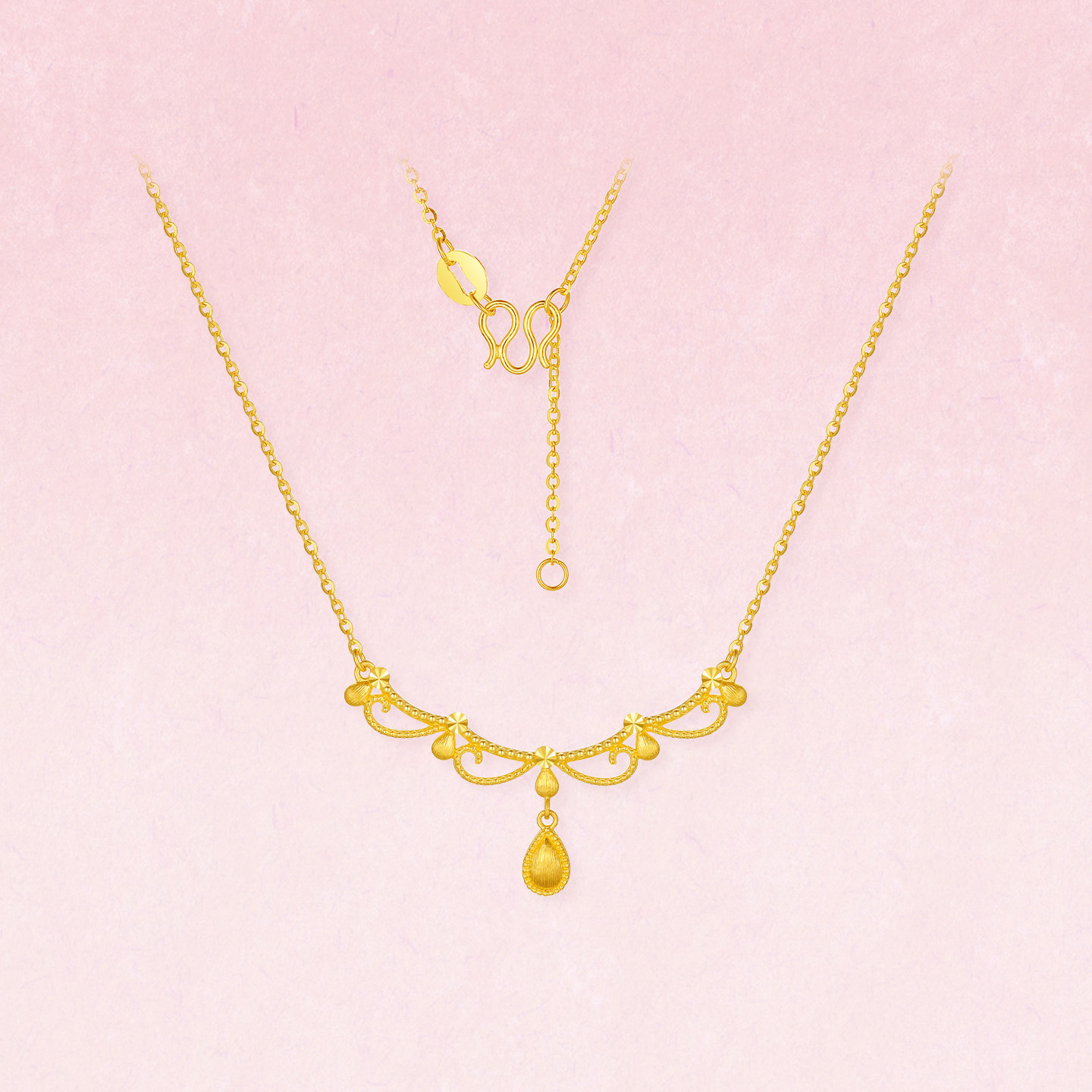周六福黄金计价5G足金链坠灵动闪耀珠泪罗缎项链蕾丝系列圣诞礼物
