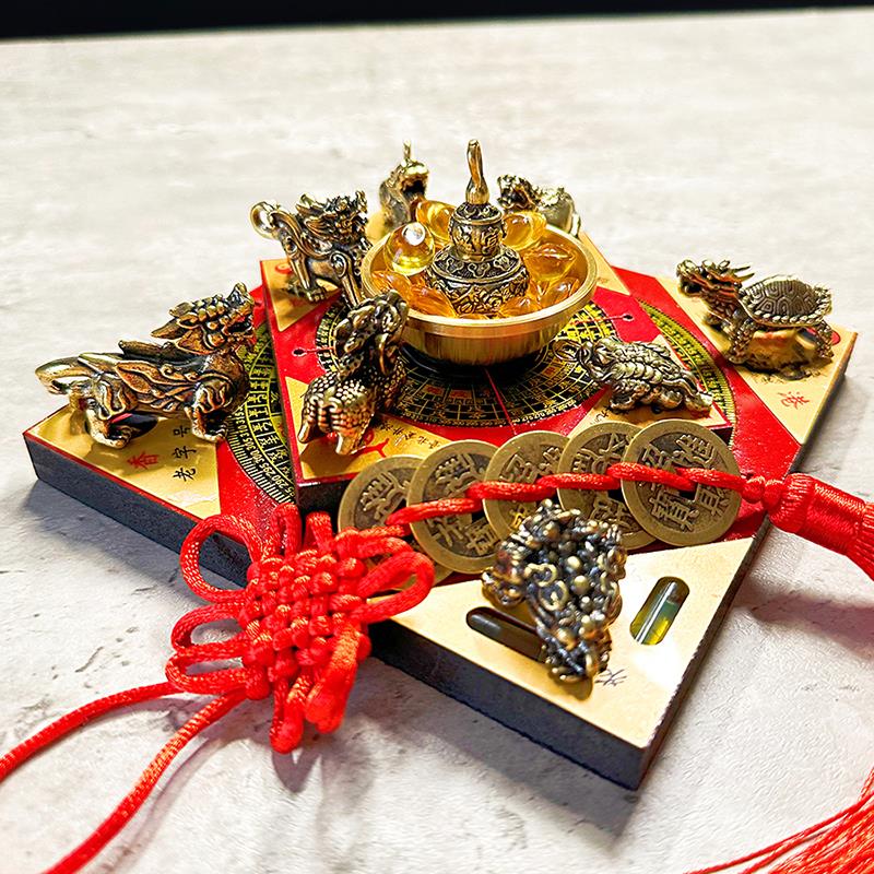 八方聚财阵聚宝盆招财金蟾貔貅龙龟麒麟玄关门店公司桌面汽车摆件