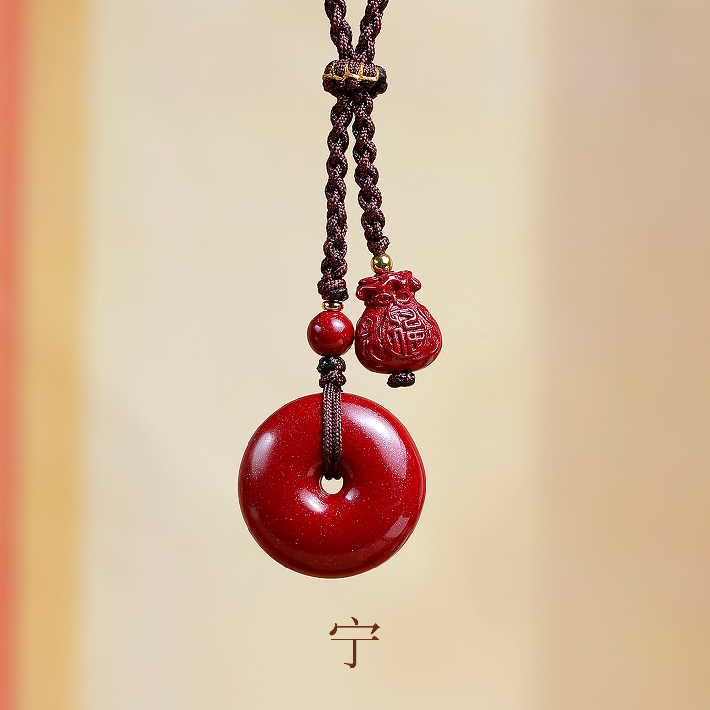 真品朱砂平安扣吊坠原矿特级护身项链女款挂绳挂件正品官方旗舰店