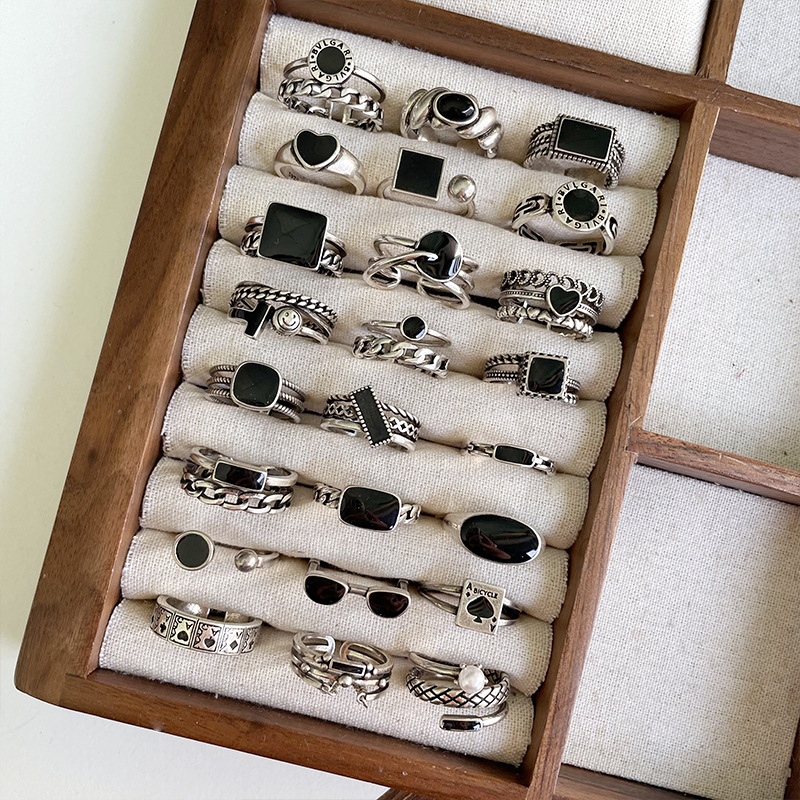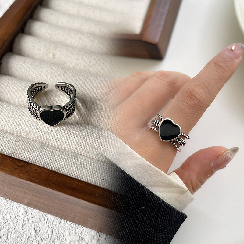 徐梦洁不讨好的勇气赵小兰同款戒指黑色滴釉复古银色不掉色开口女