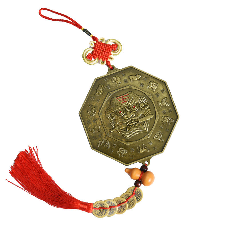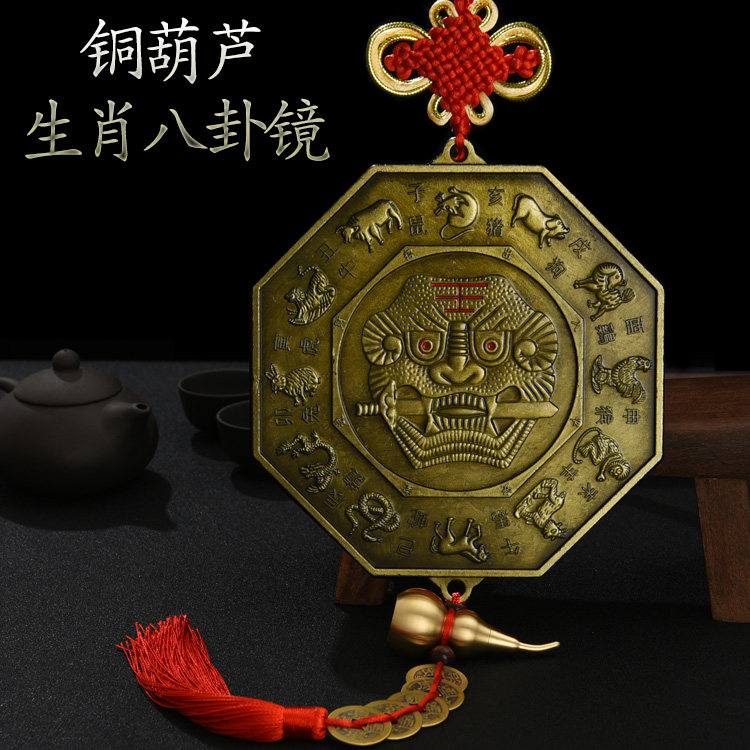 合金八卦镜家居大门口挂件彩绘太极镜子虎头镜