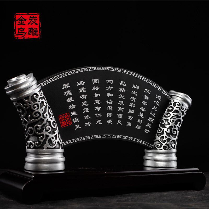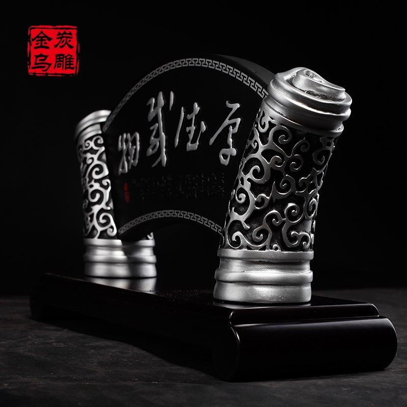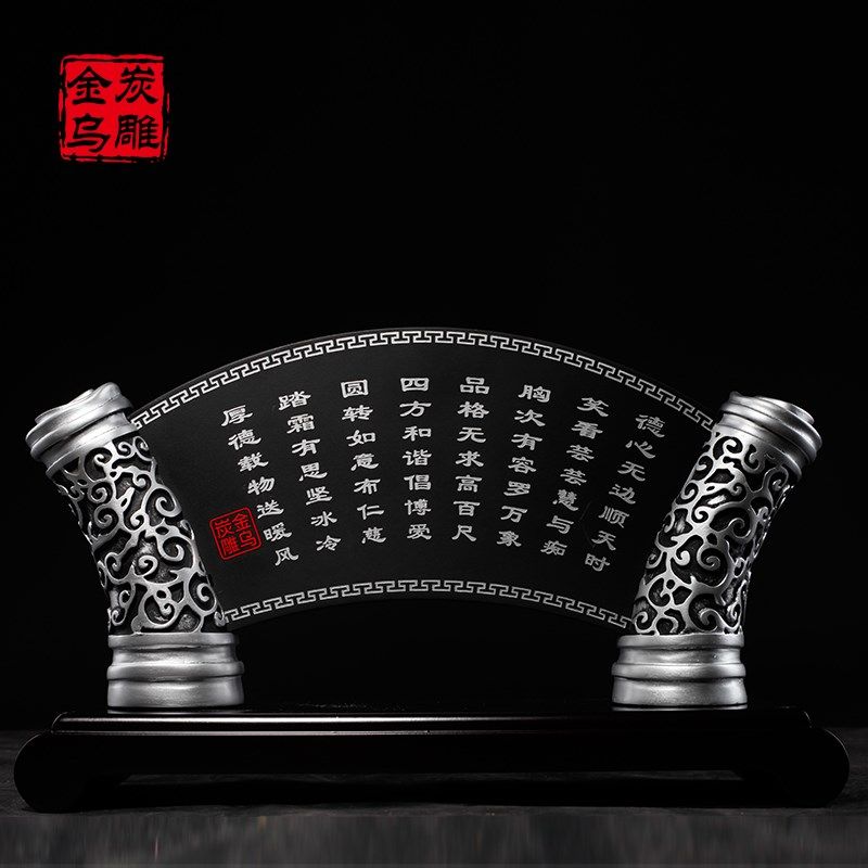 金乌炭雕 厚德载物 创意家居书房装饰品办公室办公桌摆件实用礼品