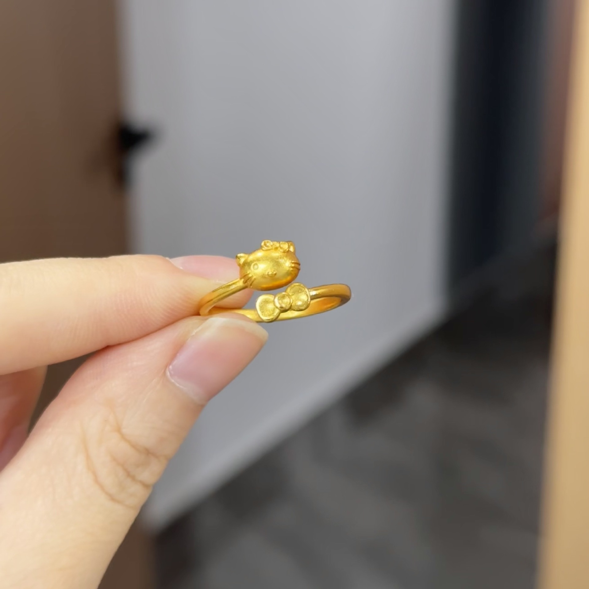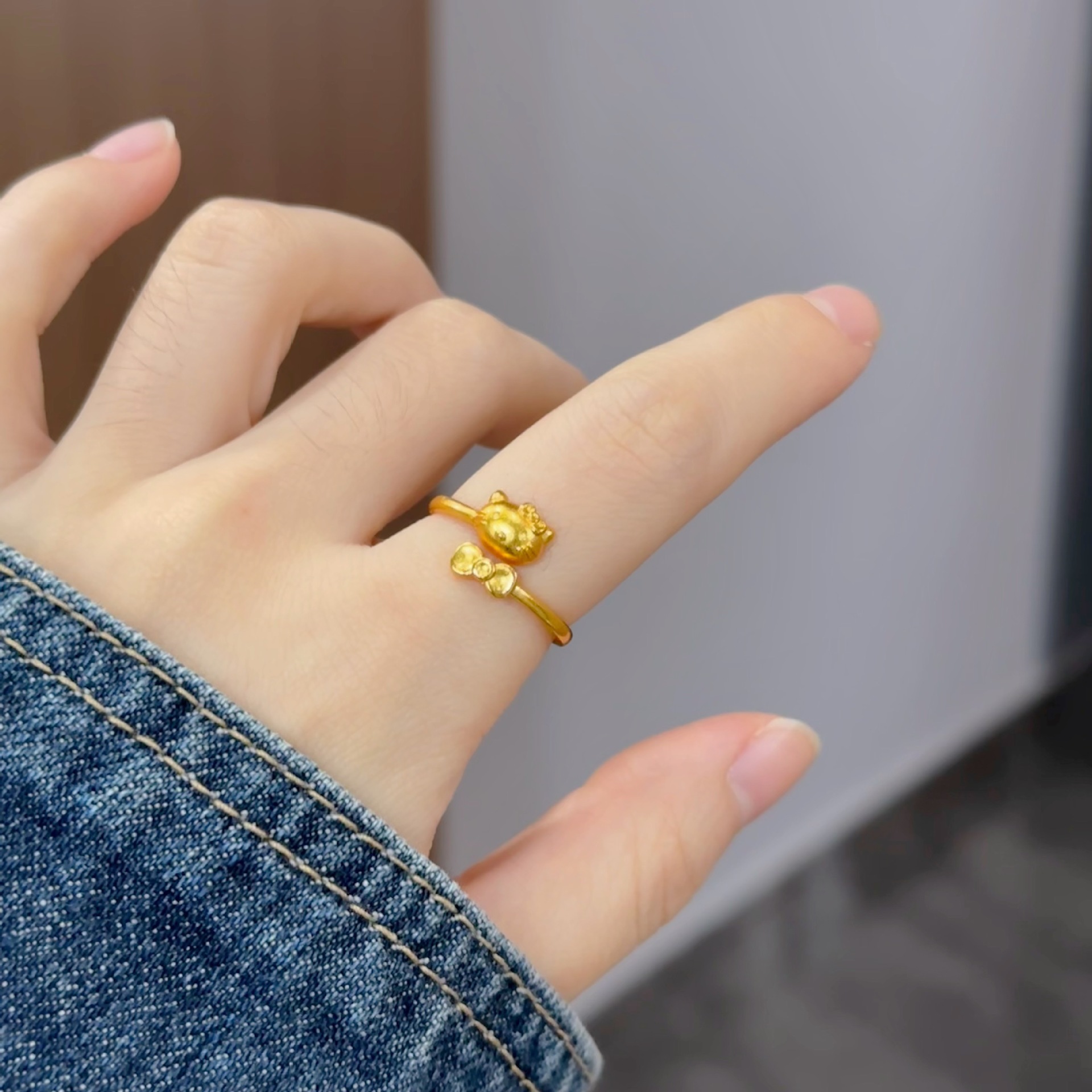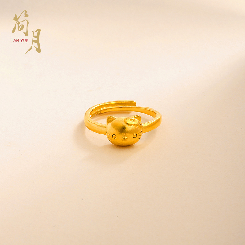 沙金卡通kt猫戒指女士开口电镀首饰饰品个性百搭指环可爱猫咪女戒