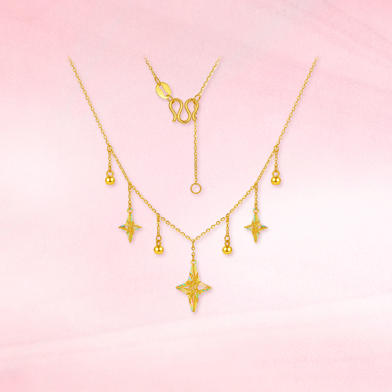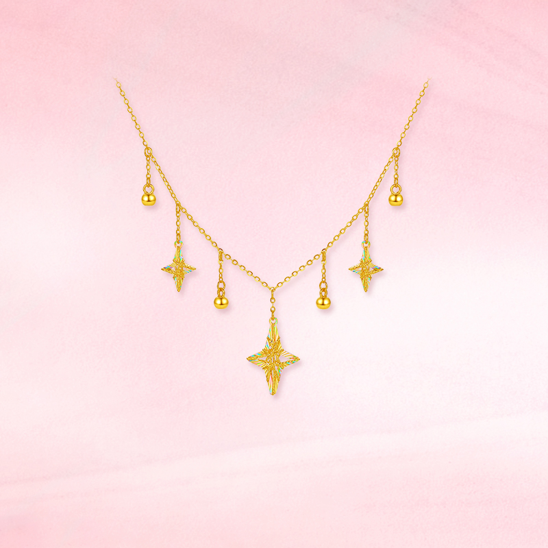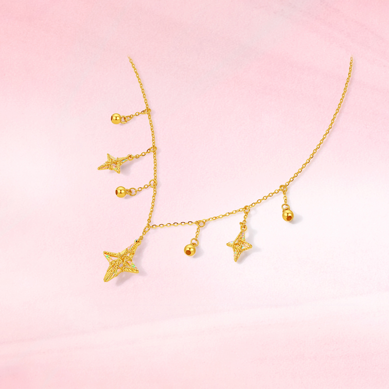 周六福黄金计价5G足金项链璀璨四芒星链坠女款七夕新品节日礼物
