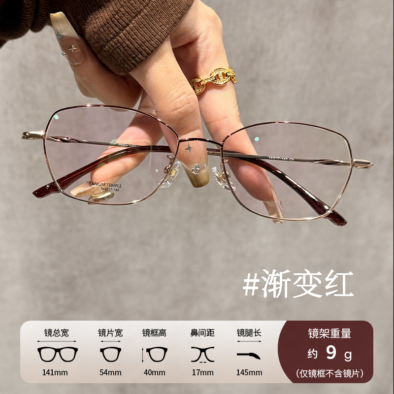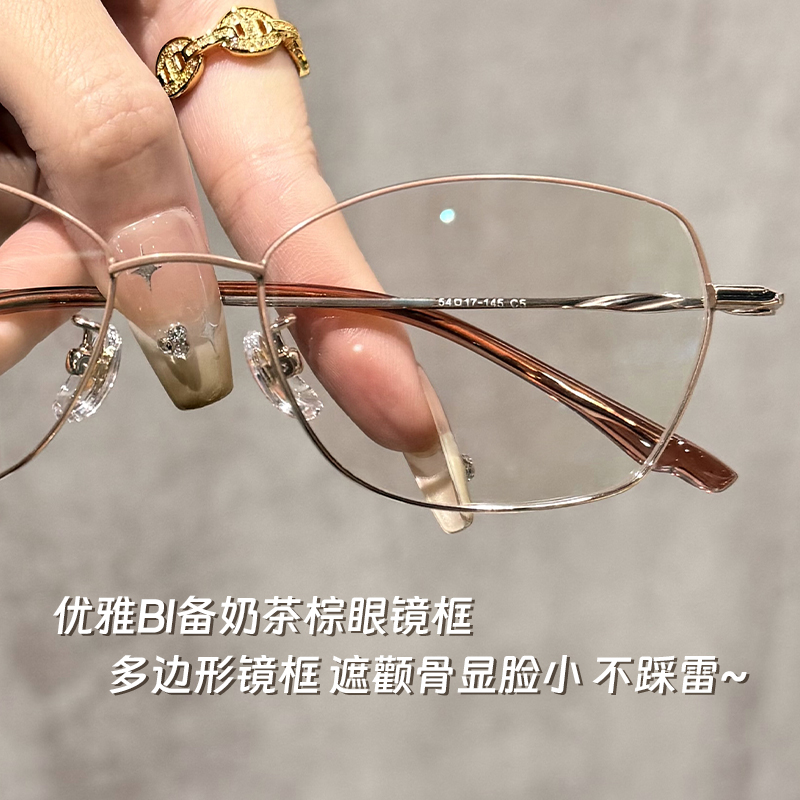 超轻钛架优雅多边形窄框眼镜近视女可配有度数素颜显脸小眼睛镜架