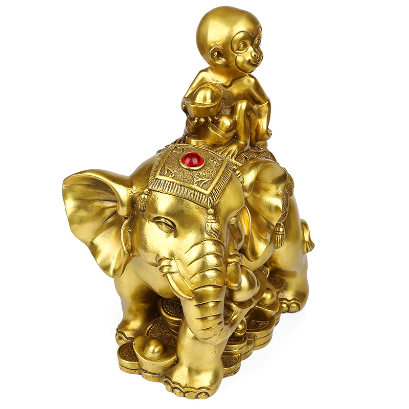 封侯拜象猴子摆件招财聚财黄铜大象客厅办公室开业送礼装饰工艺品