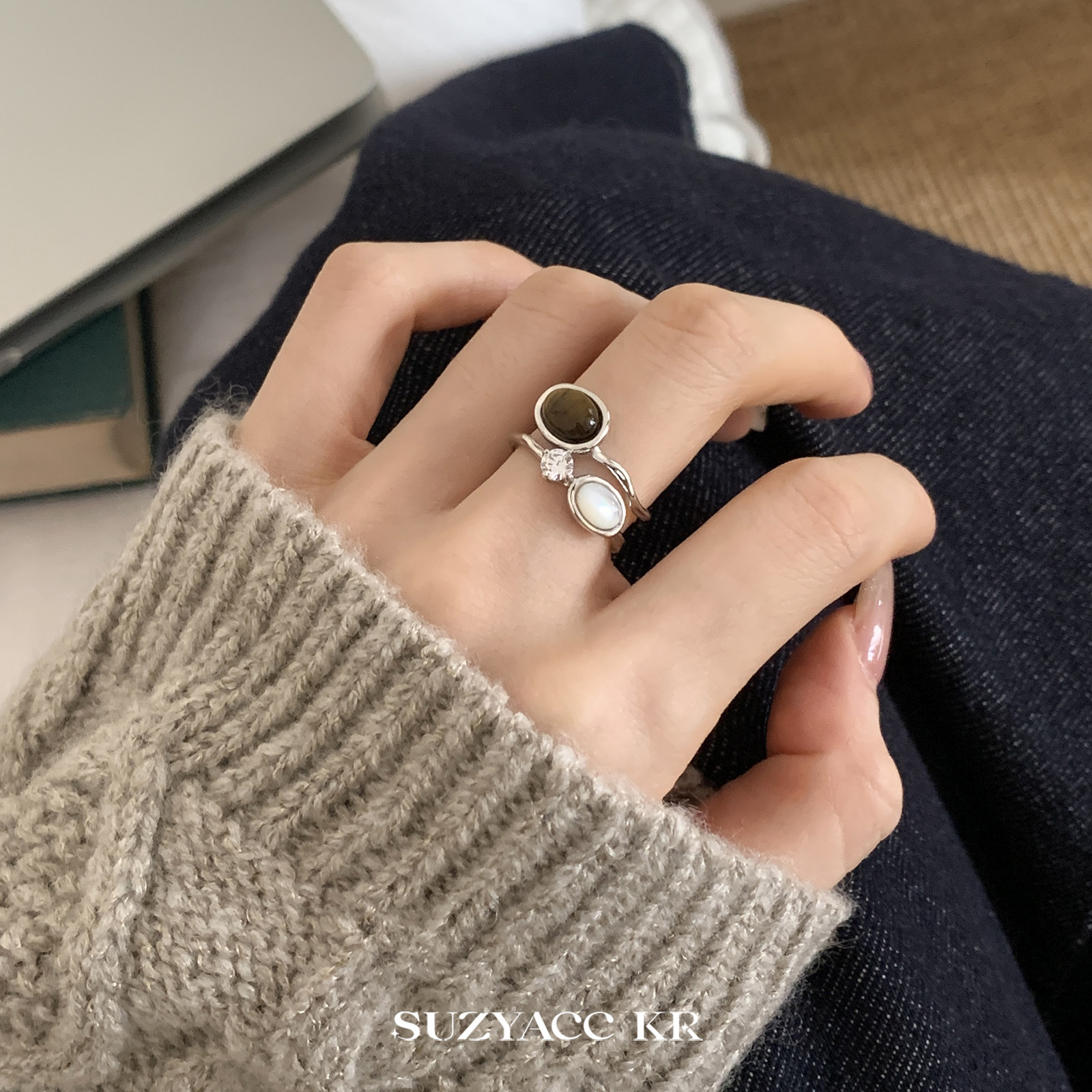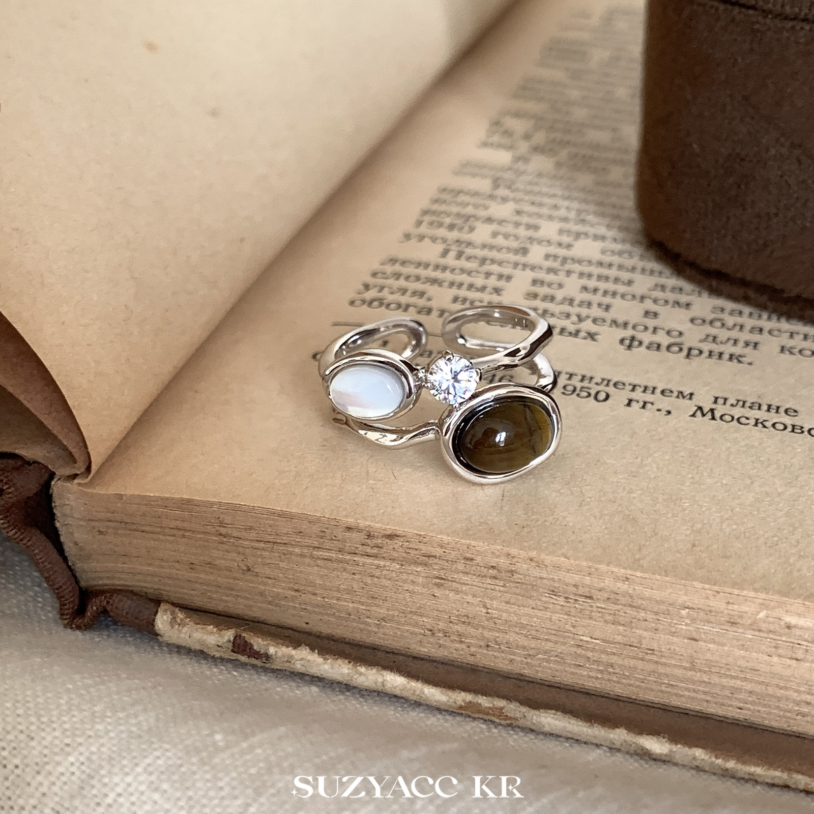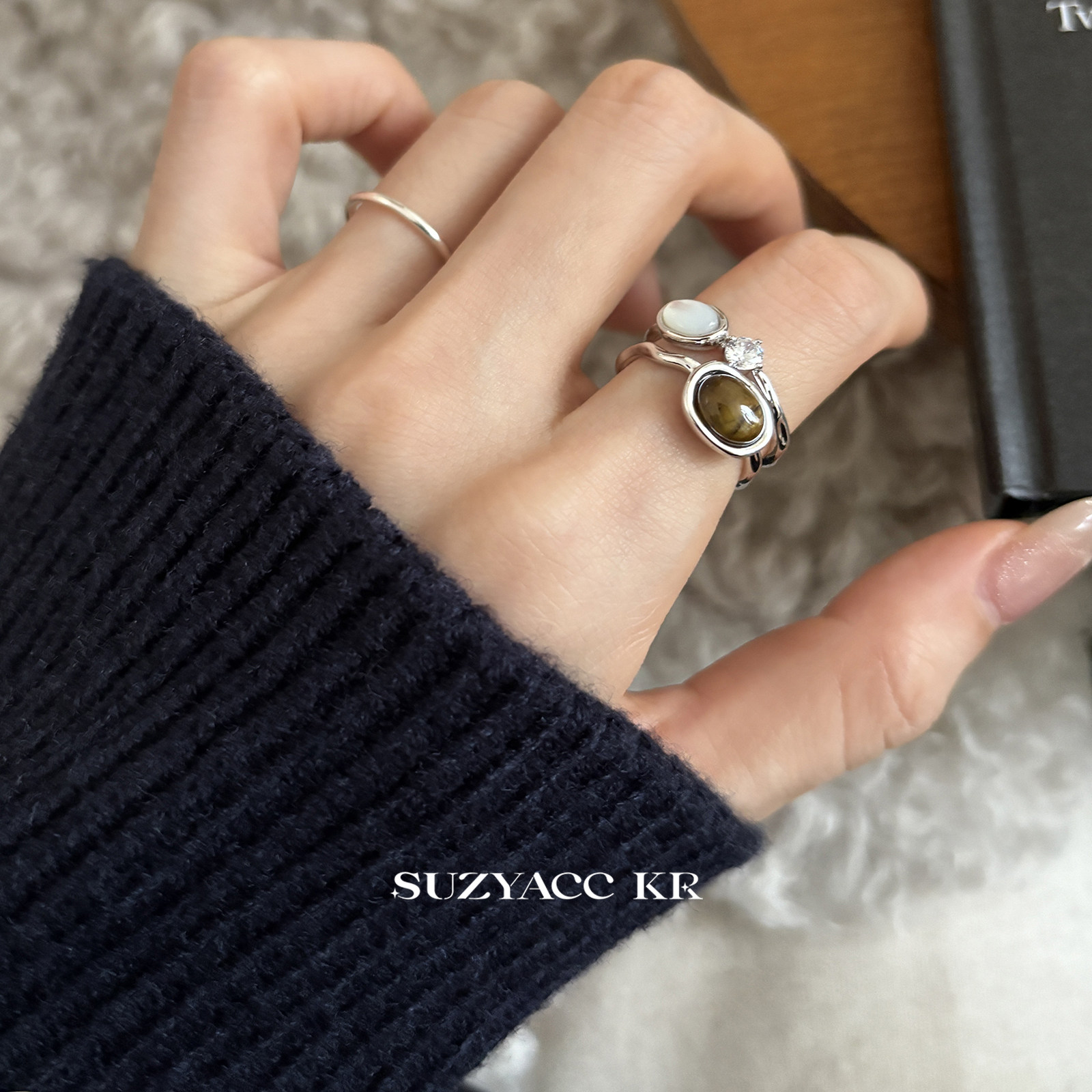 虎眼石水钻双层戒指小众设计复古高级感食指戒质感指环