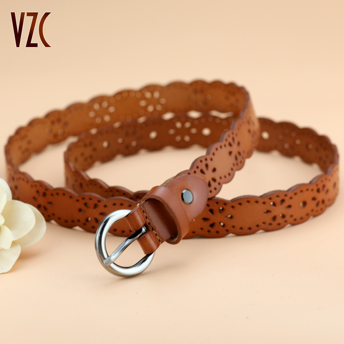 皮带女款真皮头层纯牛皮镂空棕咖色气质百搭装饰配裙子牛仔裤腰带