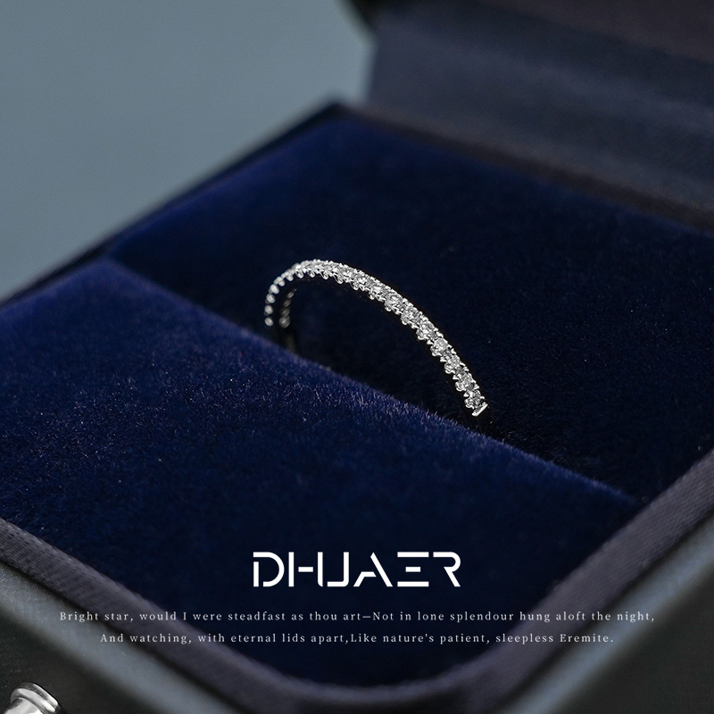 DIHUAER【流光系列】18K金人工钻石戒指女戒婚戒轻奢薄戒排钻长