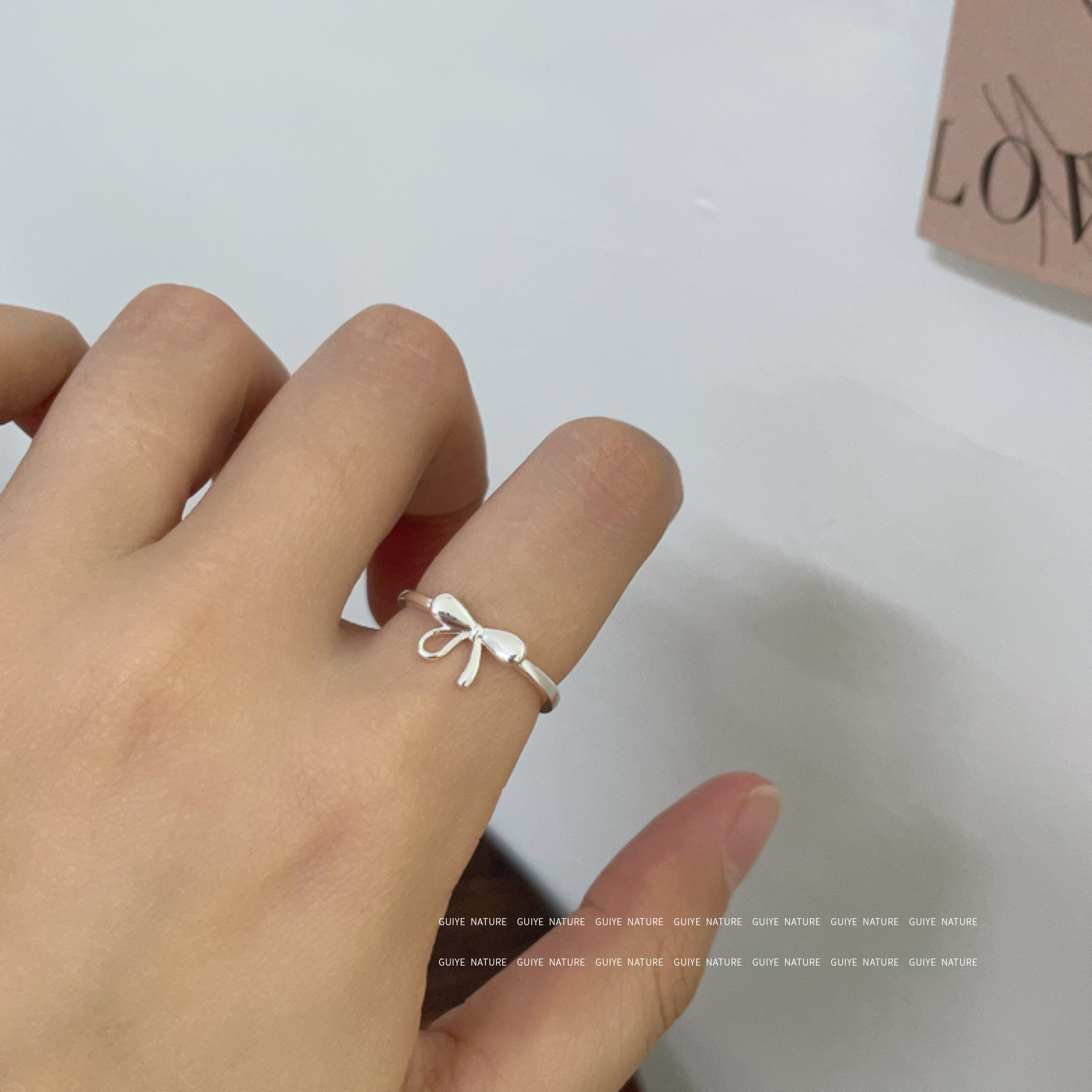 ins风亮面蝴蝶结戒指女轻奢高级感食指戒日常小巧精致甜美配饰