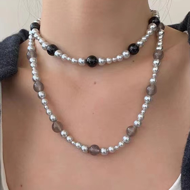 欧美潮流嘻哈黑白珍珠拼接项链配饰男女简约网红气质短颈链锁骨链