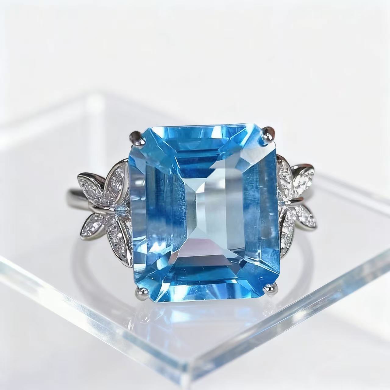 s925银新款天然托帕石戒指镶嵌时尚百搭女款简约戒指