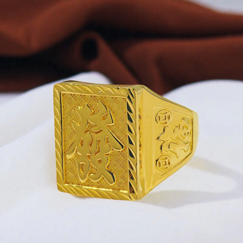 金包银发字戒指男士大宽面霸气百搭福字活口指环可调节送长辈礼物