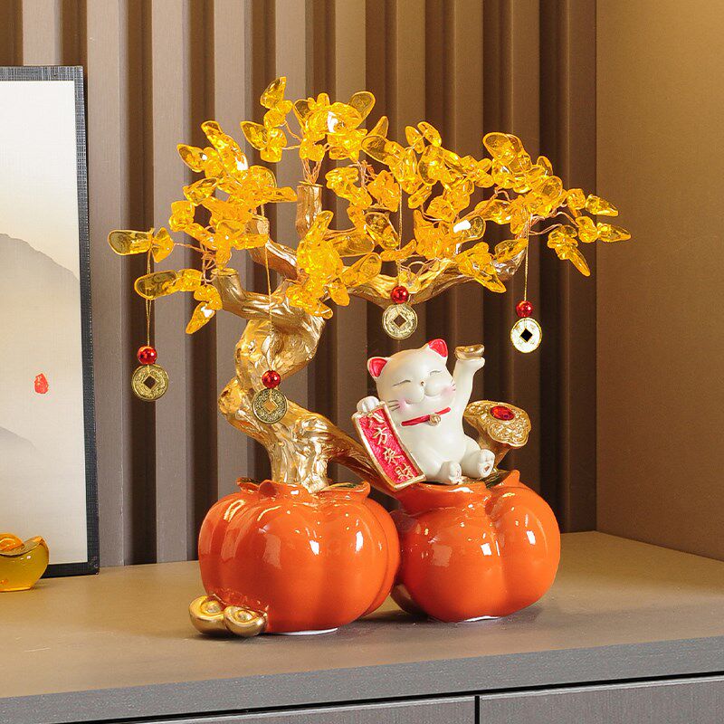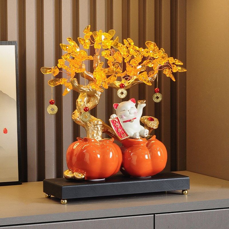 事事如意柿子摆件招财猫发财树客厅酒柜电视柜装饰品乔迁搬家礼物