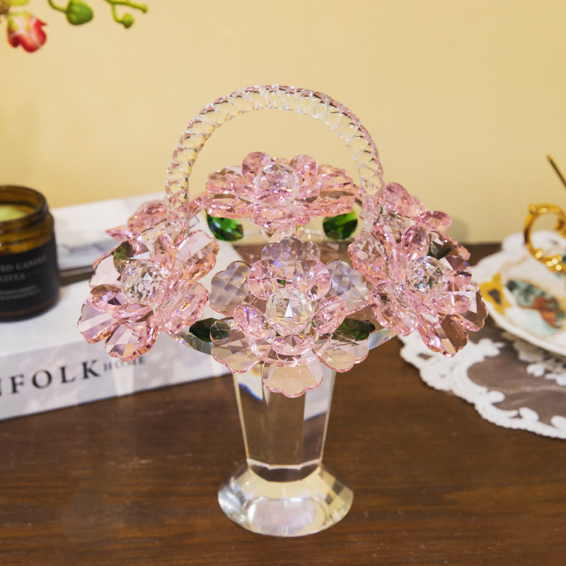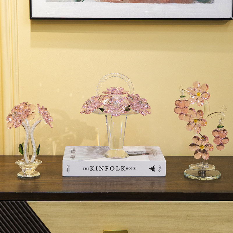 现代轻奢粉色水晶艺术工艺品摆件创意客厅酒柜家居软装装饰品礼品