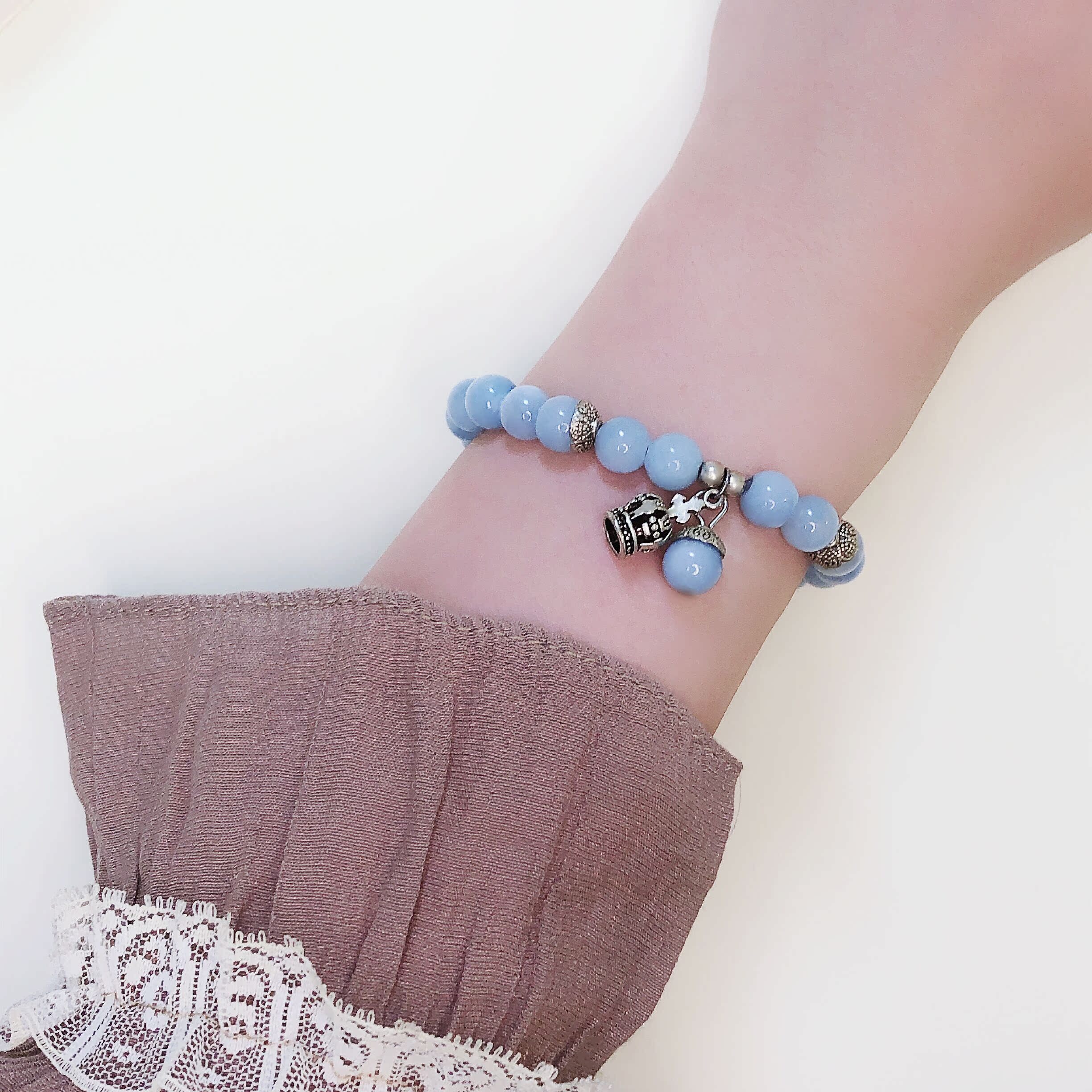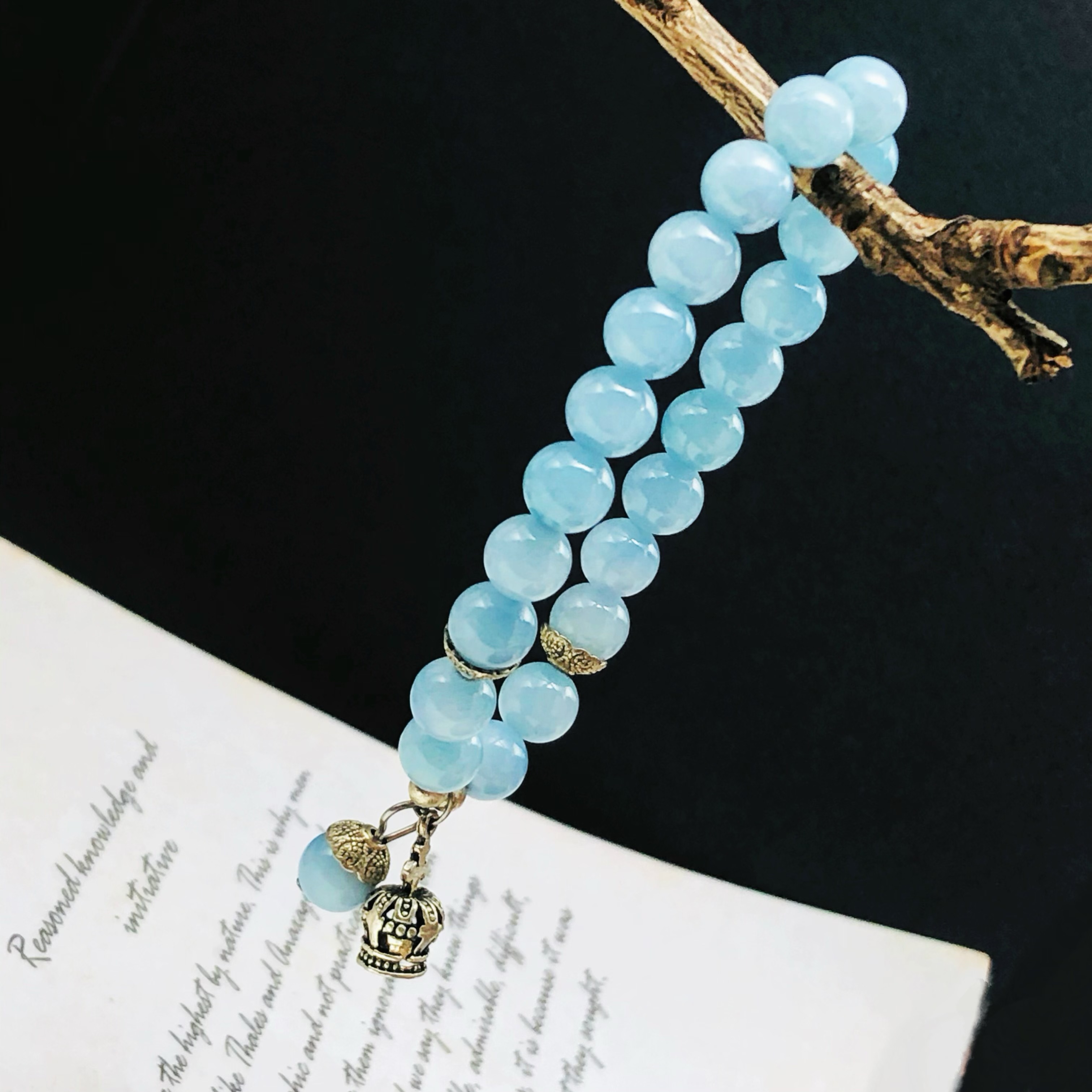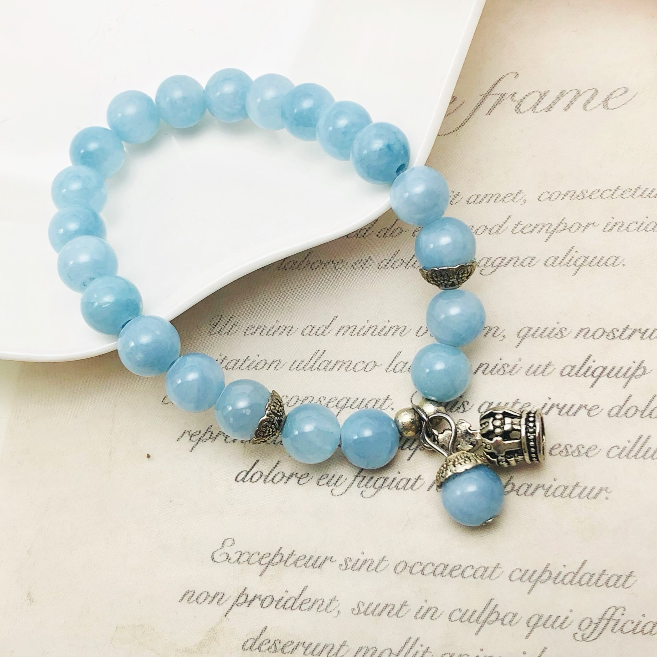新款清新时尚海蓝宝手链简约甜美百搭潮个性气质弹力女式复古手串