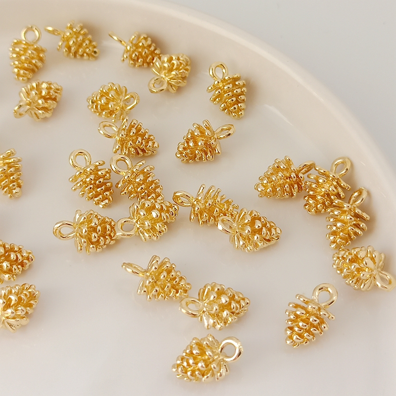 14K包金保色松子吊坠自制手工手链项链松果挂件DIY饰品配件12*7mm