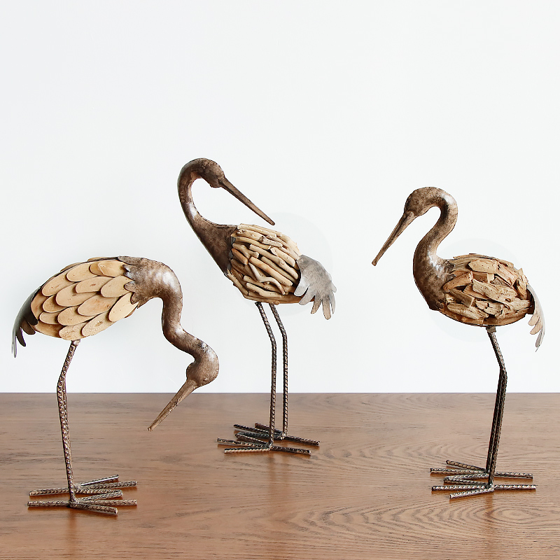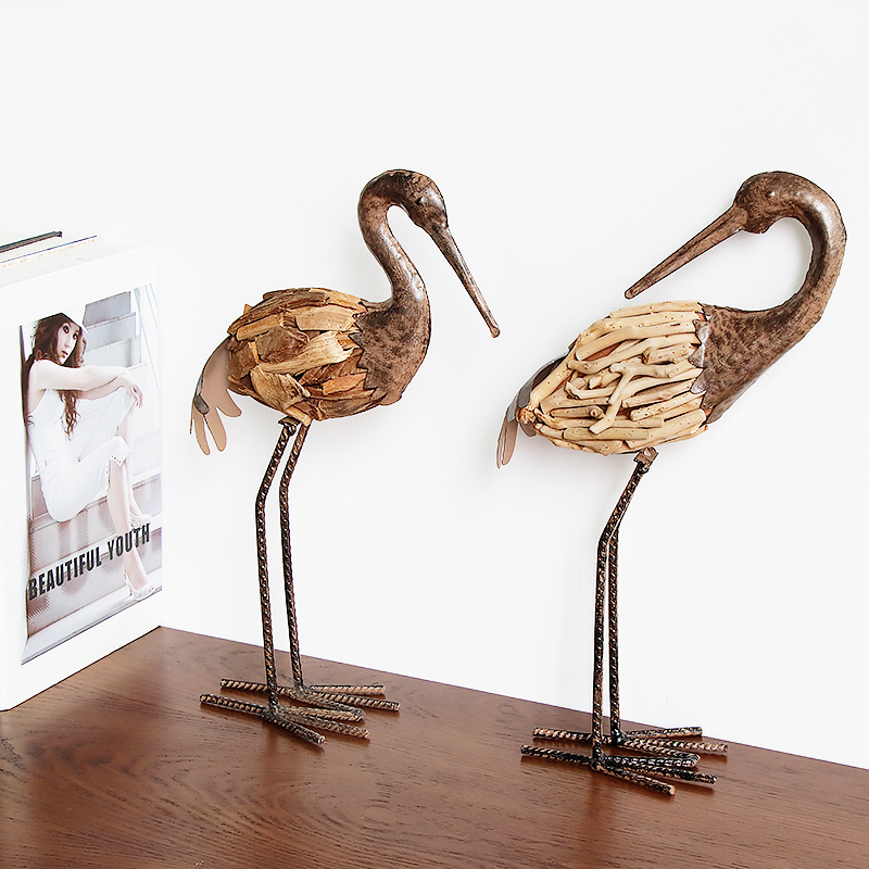 木质复古做旧动物鹤铁艺小摆件手工桌面家居玄关办公开业创意礼物