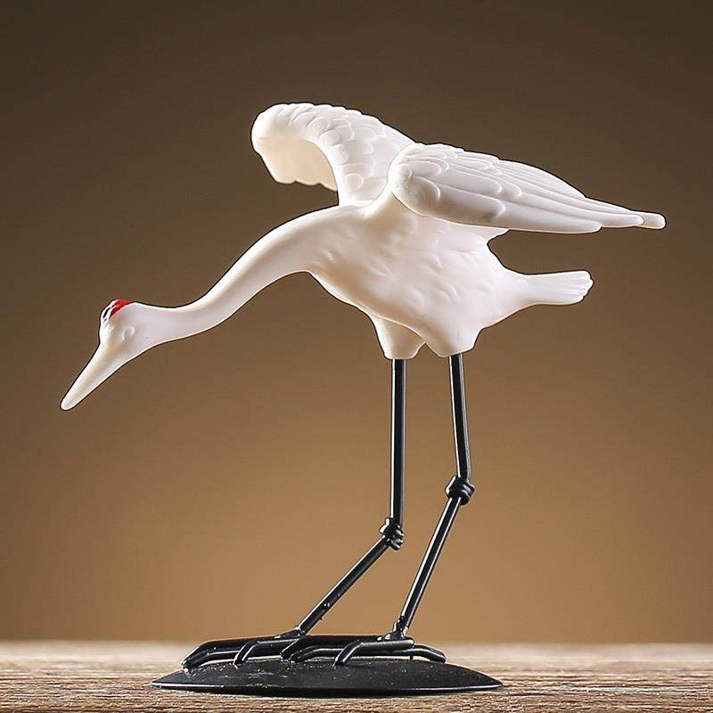 高档真仙鹤摆件丹顶鹤陶山瓷动物创意客厅流水假水池景观造装景彷
