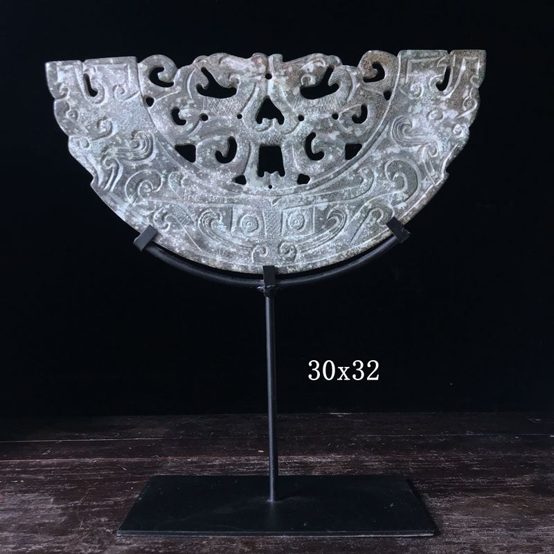 新中式玄关玉璧客厅酒店样板间装饰摆件 圆壁软装桌面白色半壁