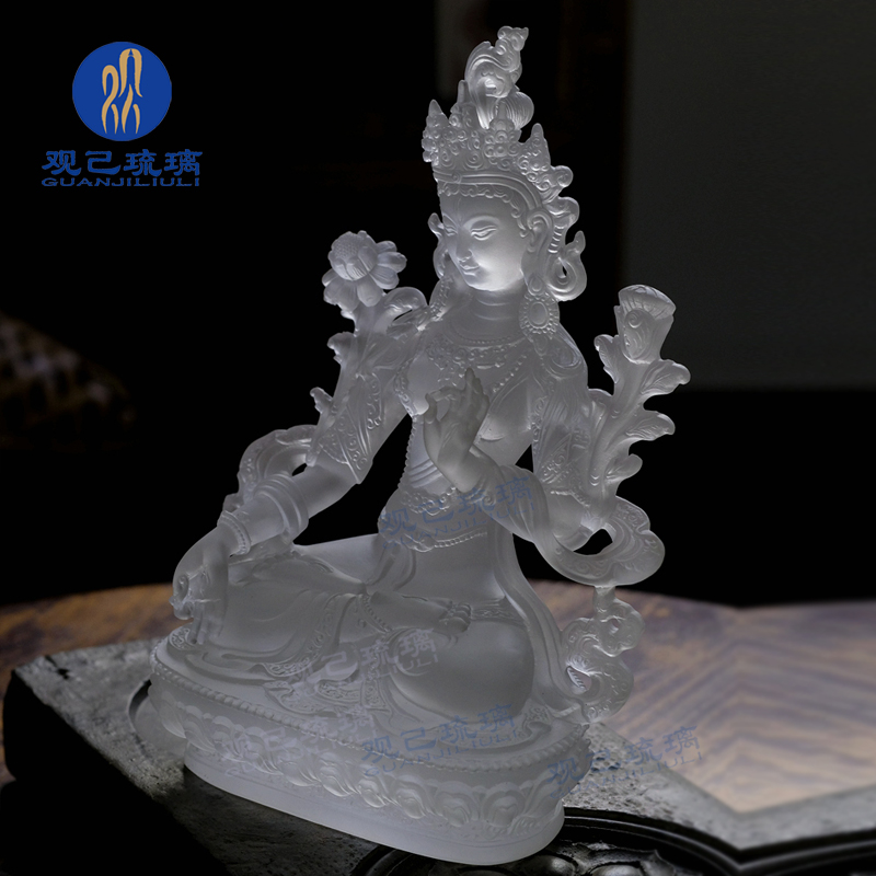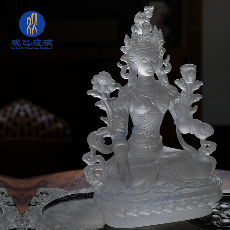 琉璃白度母家居家用客厅摆件工艺品佛堂供奉贴金装饰寺院佛像