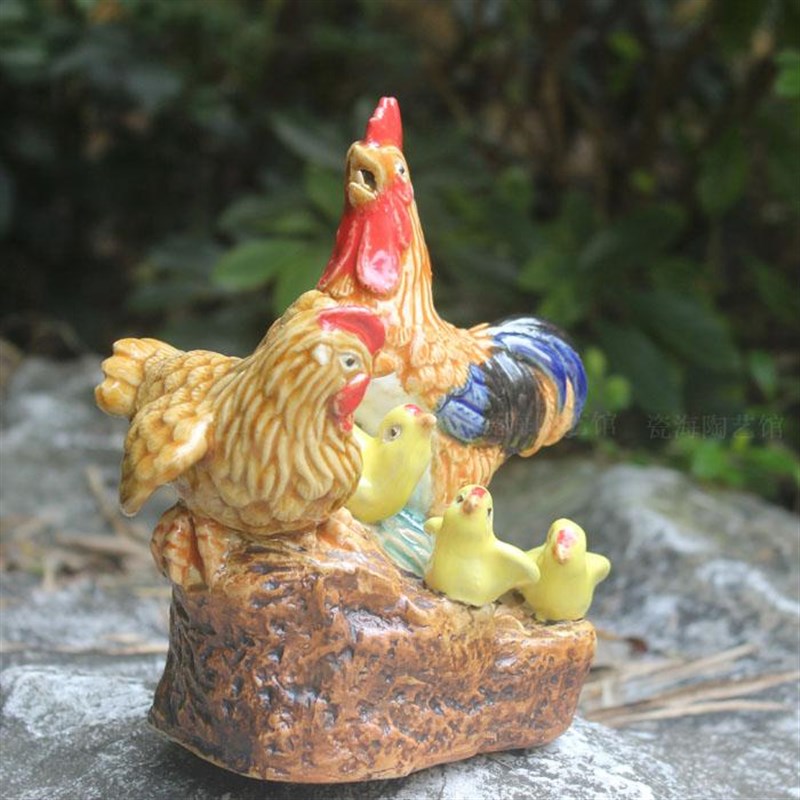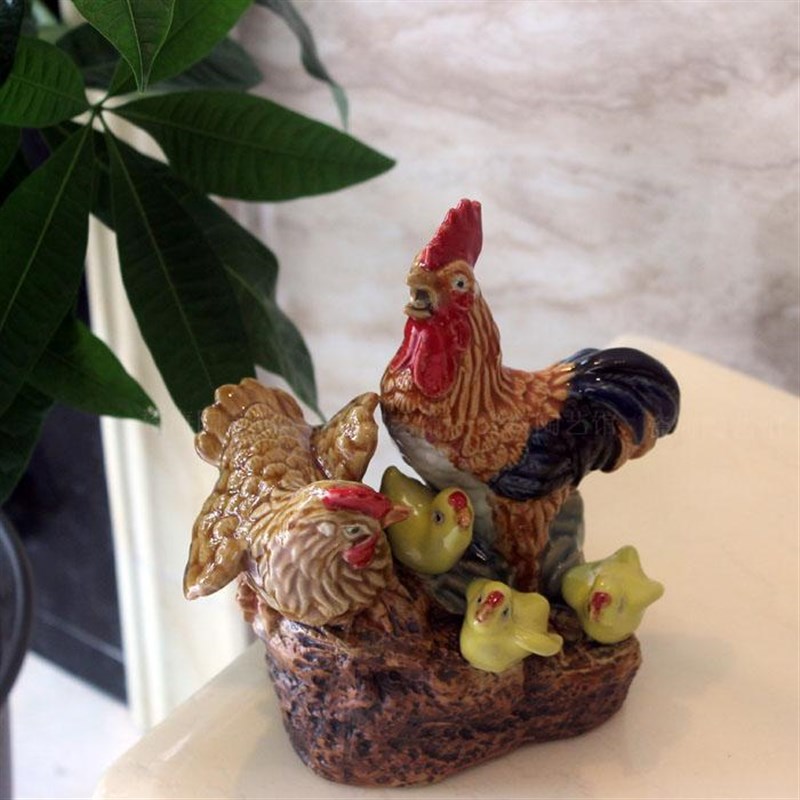 合家欢陶瓷摆件公鸡摆件母鸡小鸡摆件家I居装饰摆件办公室陶艺摆