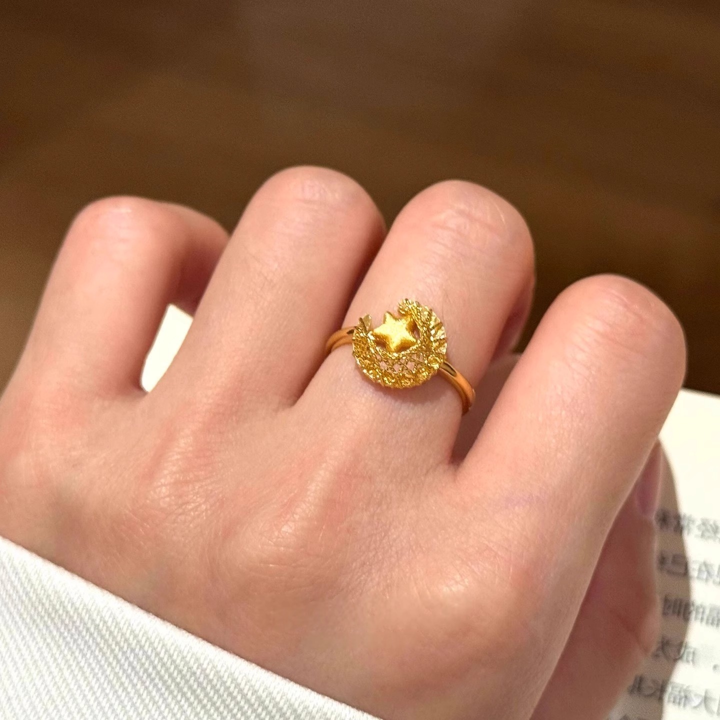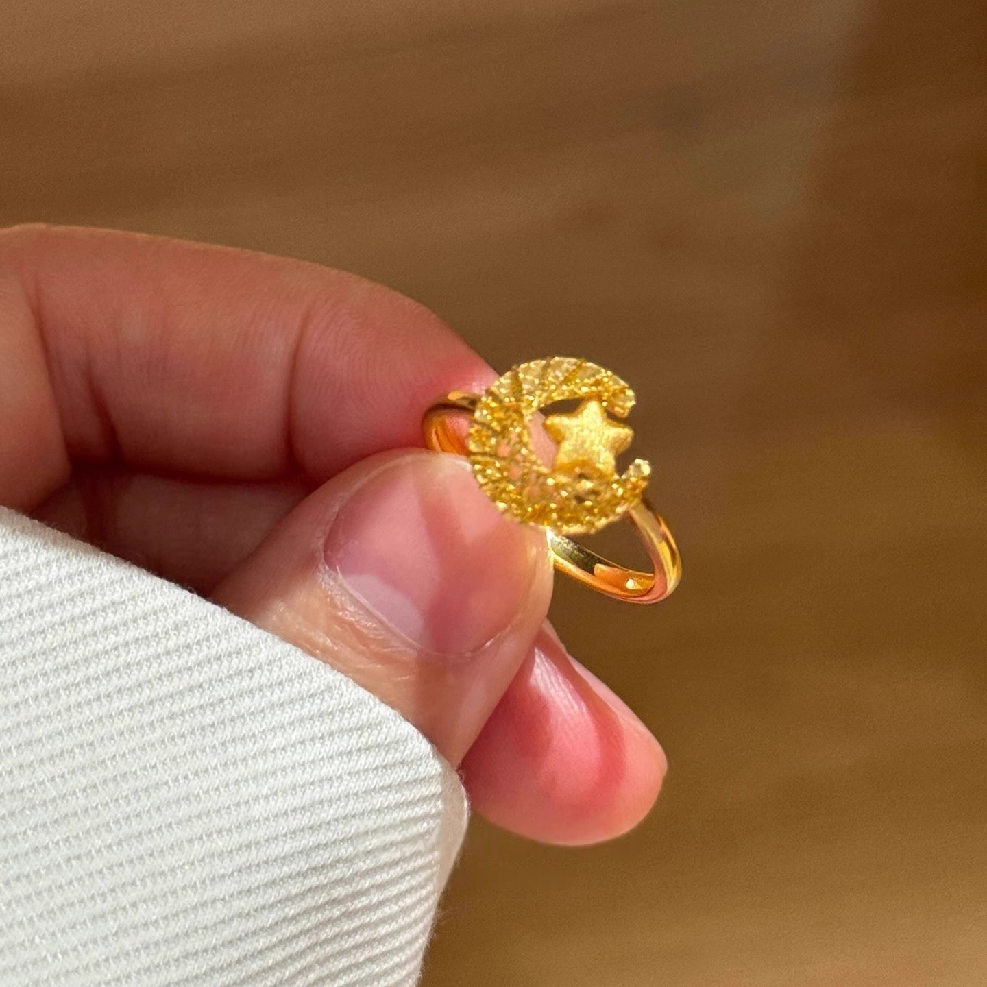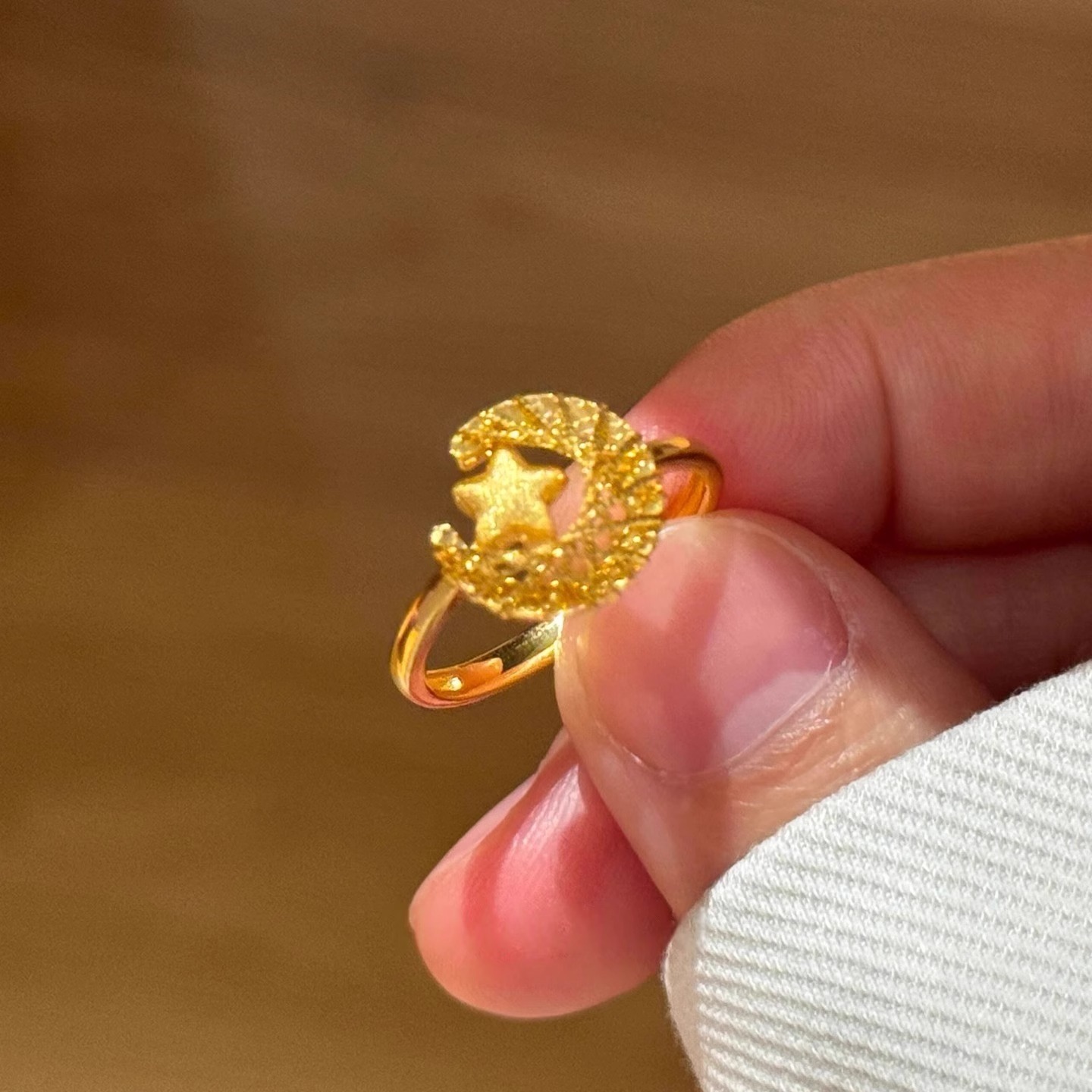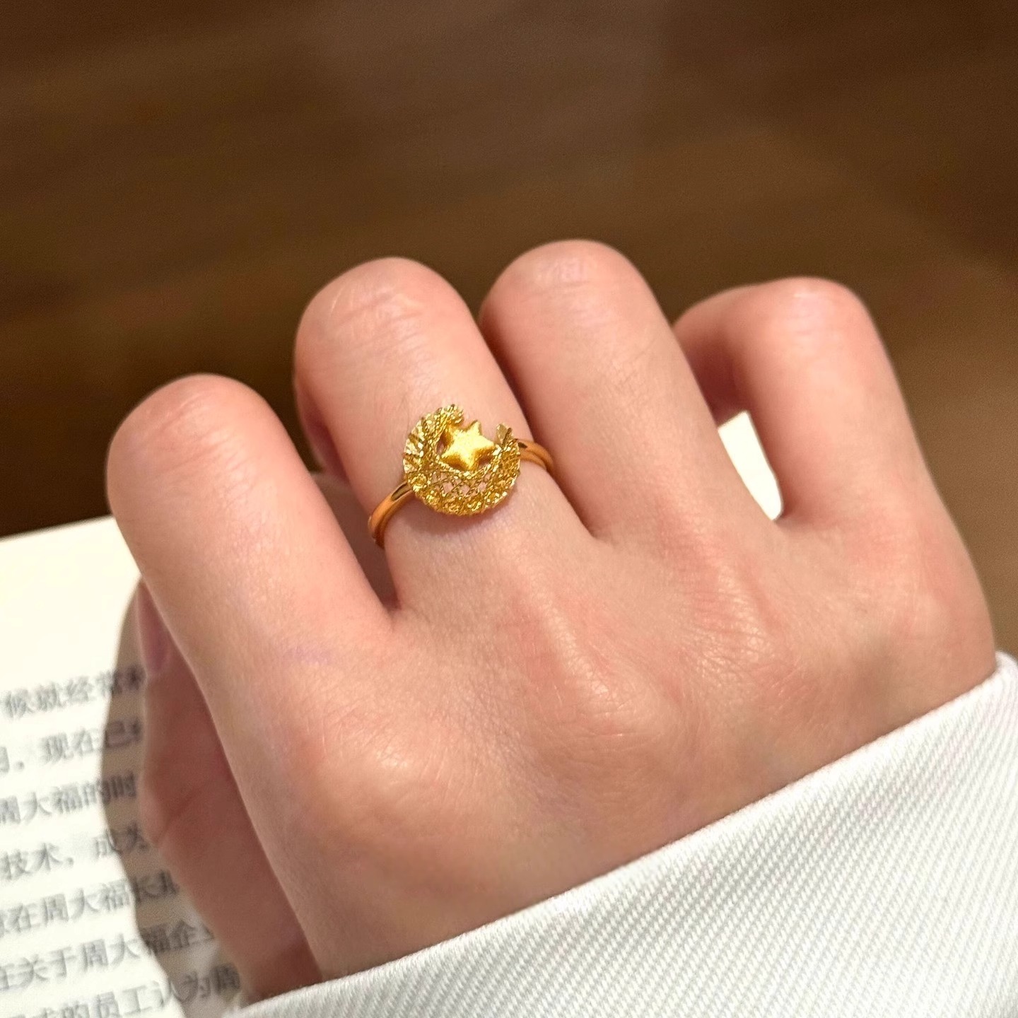 金色爆闪半月星星戒指女2025新爆款指环轻奢小众设计高级感食指戒