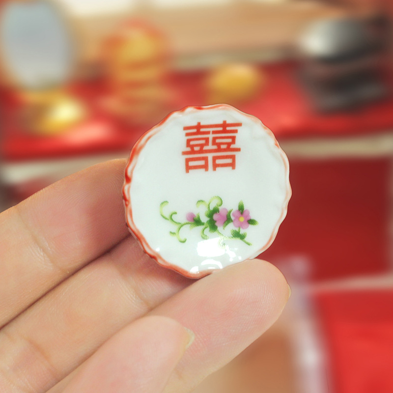 当前位置:首页>商品详情>中国风娃娃屋微缩玩具微景拍摄道具迷你陶瓷双喜碟子餐具模型OB11