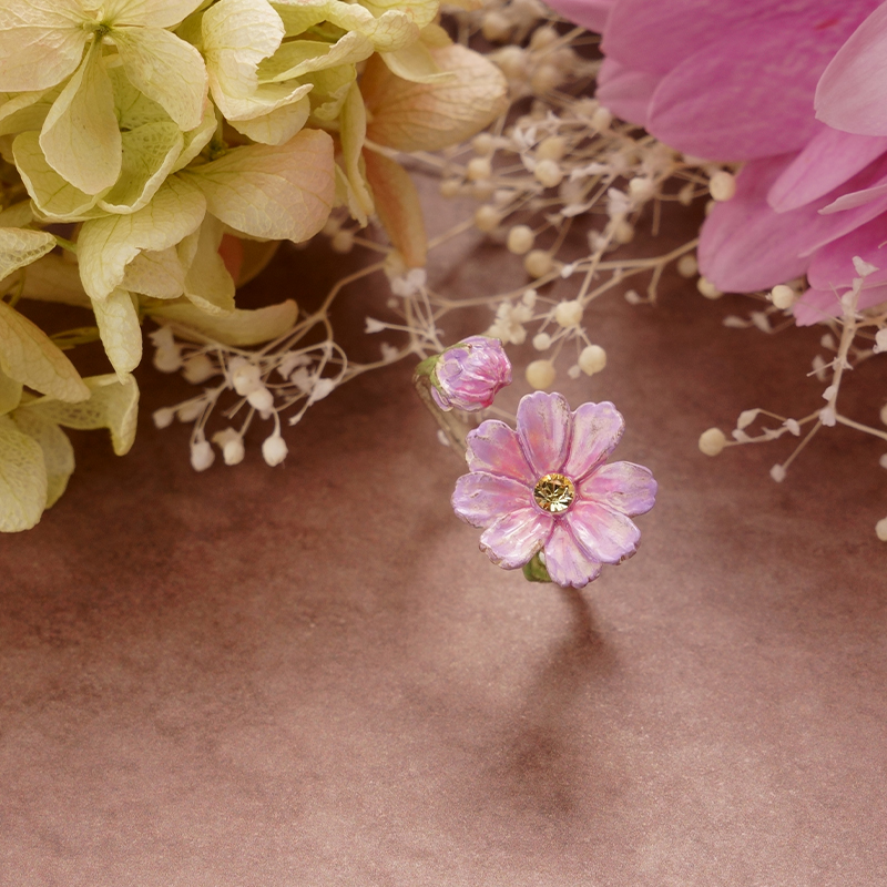 Palnart poc粉色秋樱大花朵氛围感冬天可爱小众日系独特设计戒指