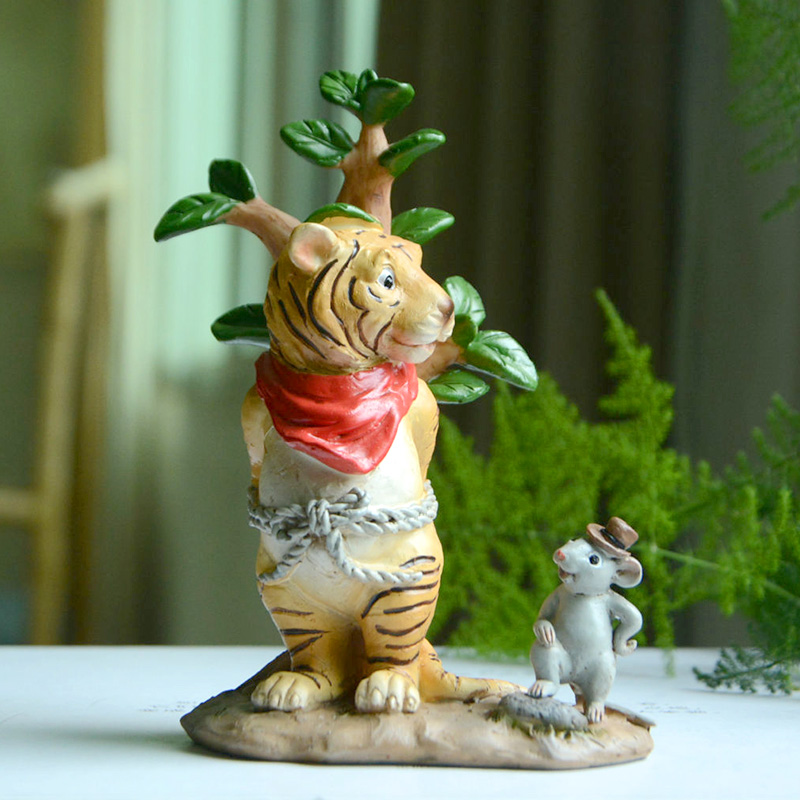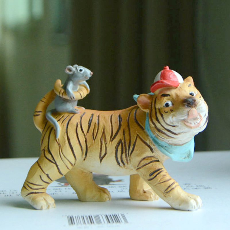 创意老虎摆件可爱树脂公仔虎年生肖礼品书房桌面车内饰品生日礼物