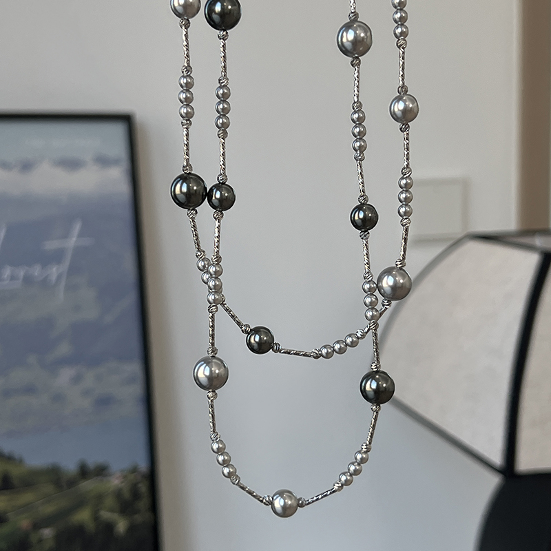 方糖家 原创多种戴法满天星真多麻色混彩珍珠毛衣链轻奢小众项链