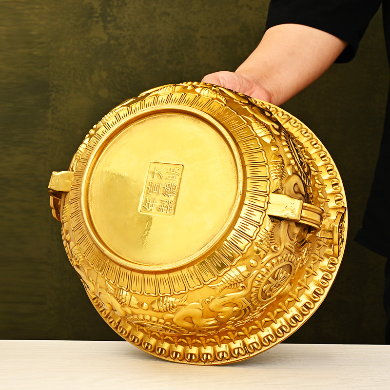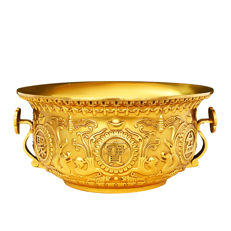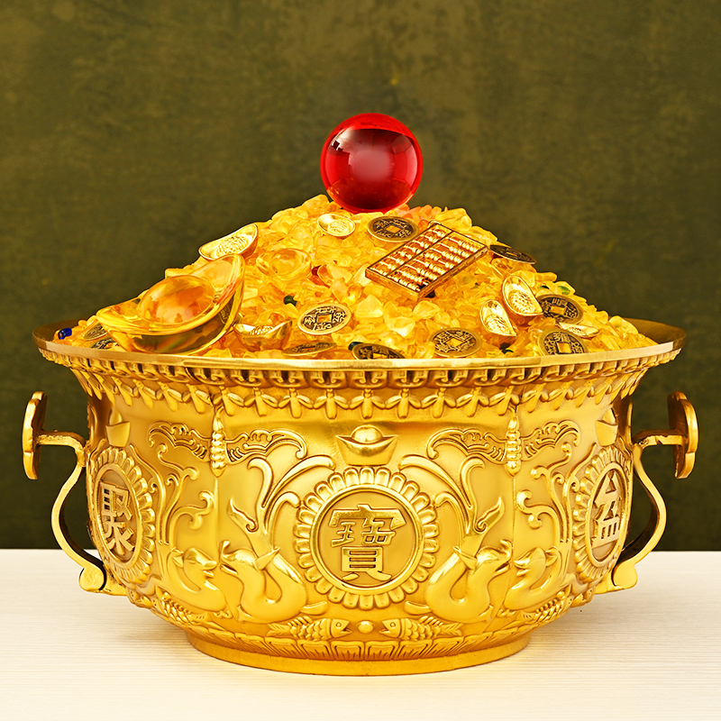 铜聚宝盆摆件实心纯家用客厅工艺品装饰聚招大号财盆店铺公司礼品