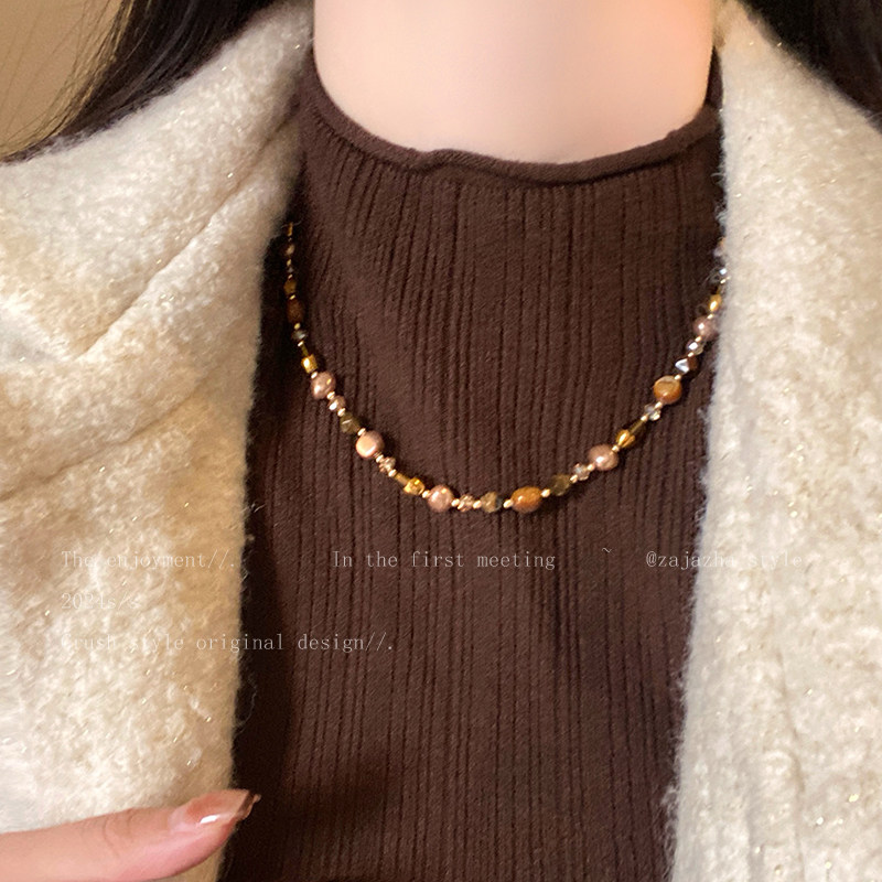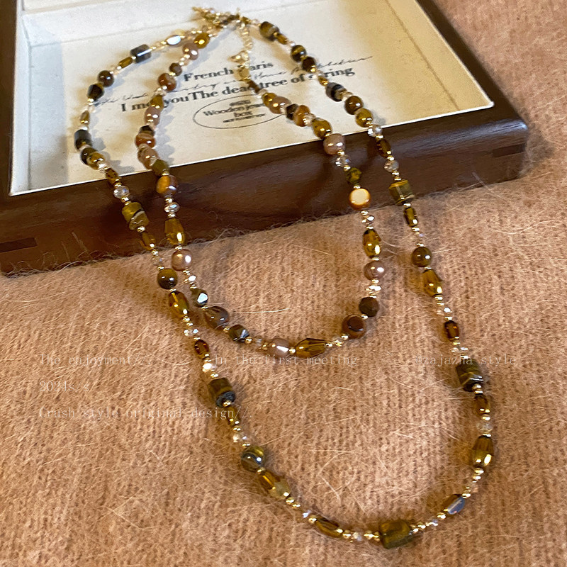 美拉德虎眼石项链女款秋冬长款叠戴高级感毛衣链棕色复古串珠配饰