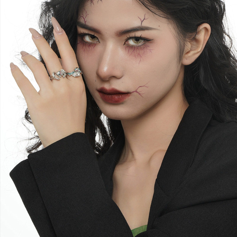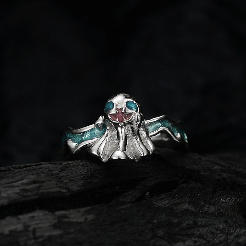 ears青绿色滴胶幽灵戒指中性男女同款食指戒S925纯银不掉色指环饰
