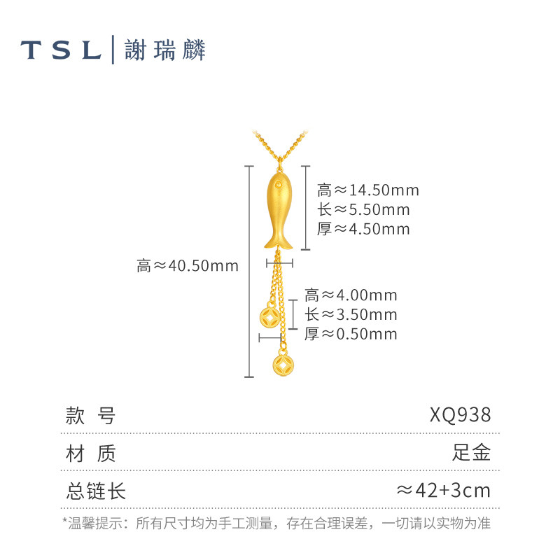 TSL谢瑞麟黄金项链鱼形5G黄金套链女士新品锁骨链计价黄金XQ938