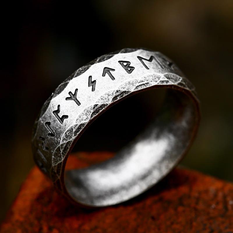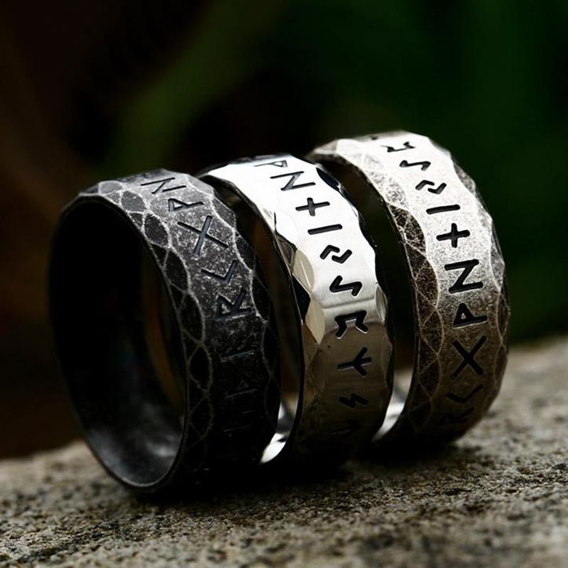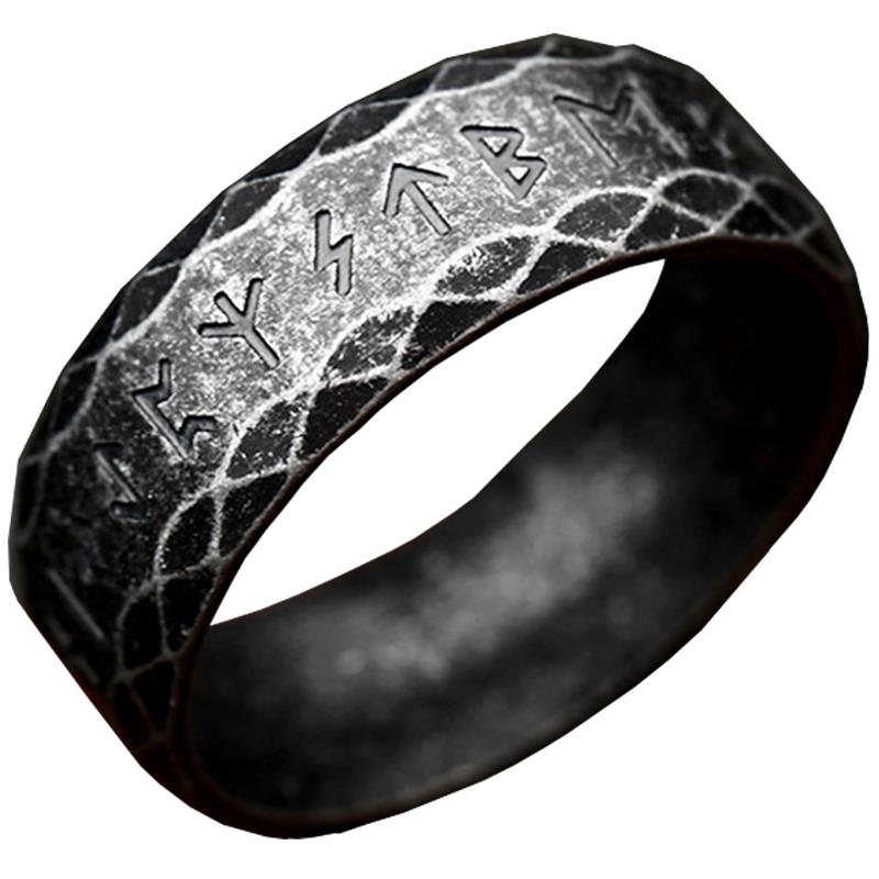 黑色卢恩符文钛钢戒指男潮牌嘻哈个性复古北欧维京食指环女高级感