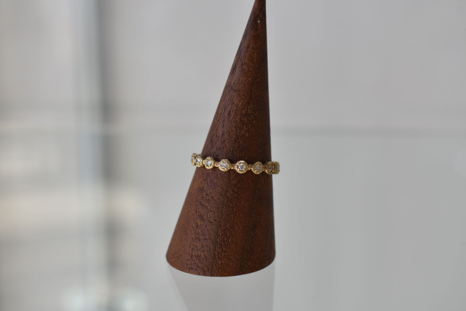 包税包邮日本代购noguchi职人手工白色钻石镶嵌复古金色戒指指环