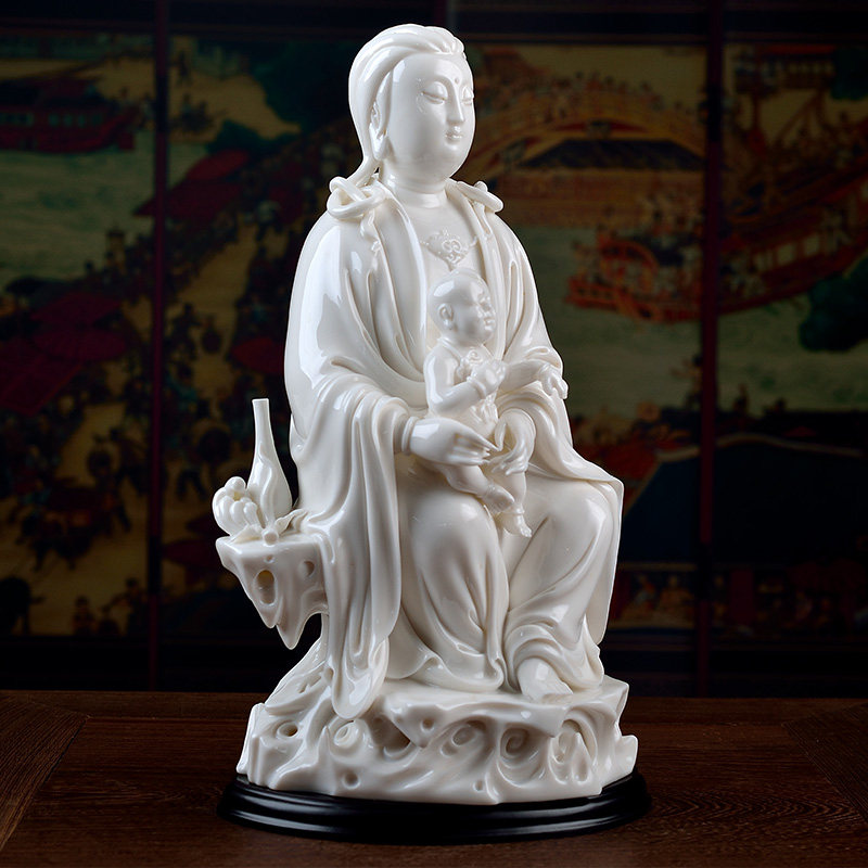 戴玉堂陶瓷摆件《汉白玉瓷送子观音》林禄扬佛像供奉家用客厅艺术