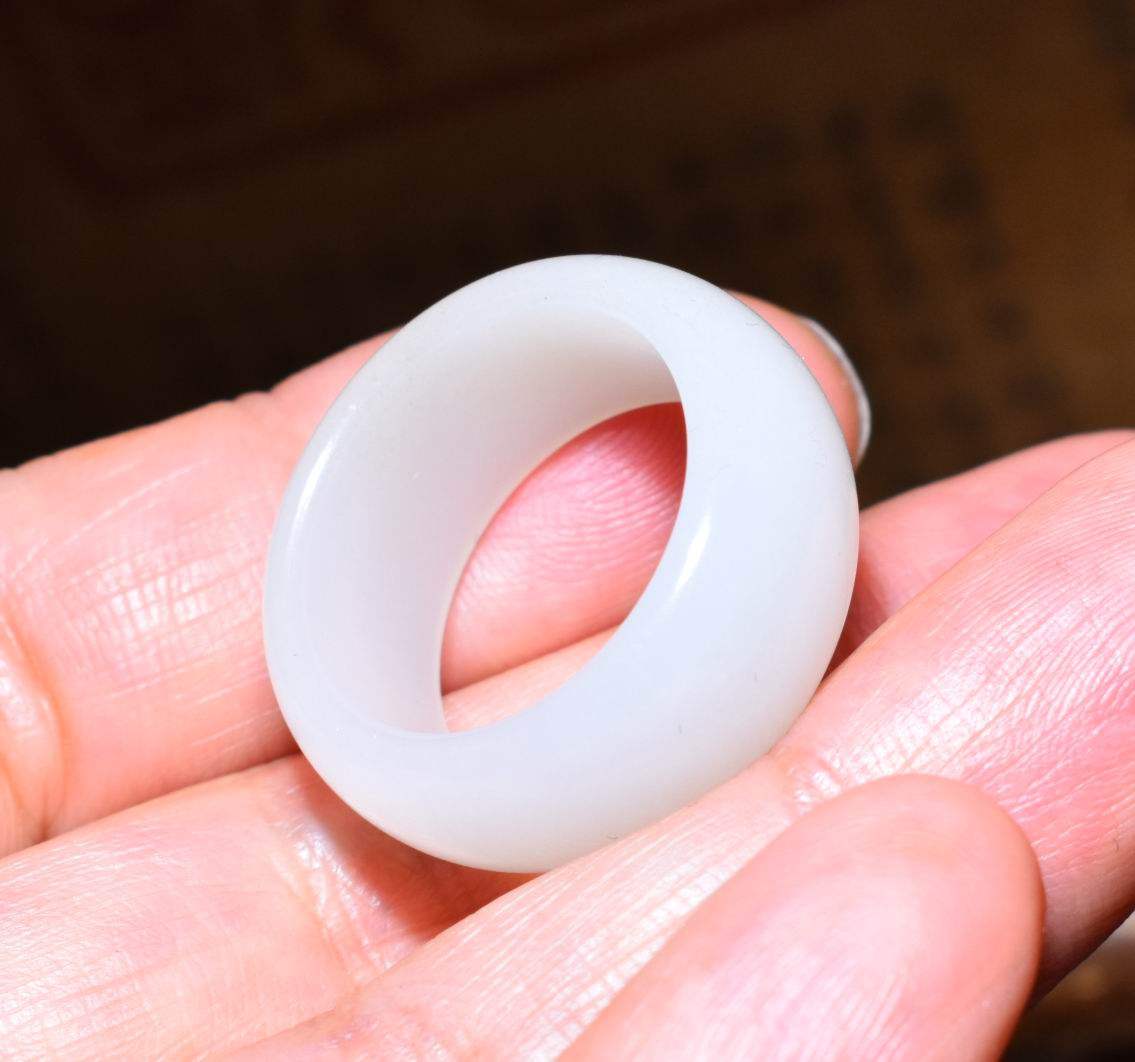 新疆的猫JJ121902 5.8克18mm细润早期老料且末糖白玉指环