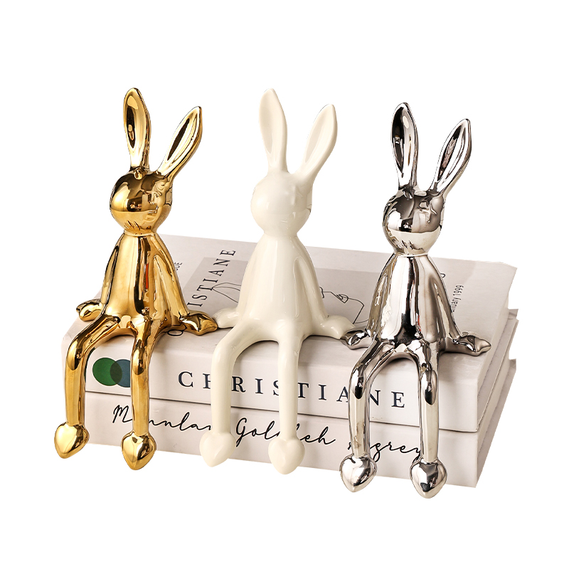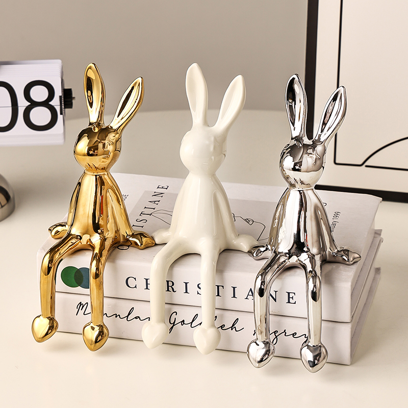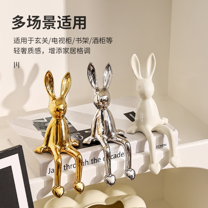 坐姿长耳a朵兔子电镀摆件轻奢样板房间卧室书架隔断酒柜桌面装饰