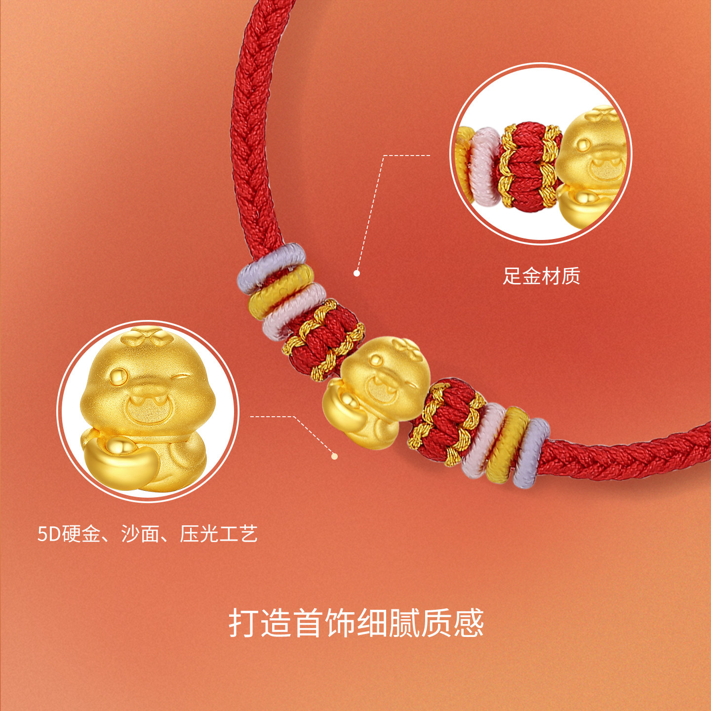 周六福黄金5d硬金转运珠定价女蛇十二生肖马抱元宝招财圣诞礼物