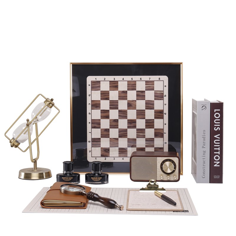 样板间书房装饰摆件样板房书桌软装复古笔记本手稿钢笔放大镜道具