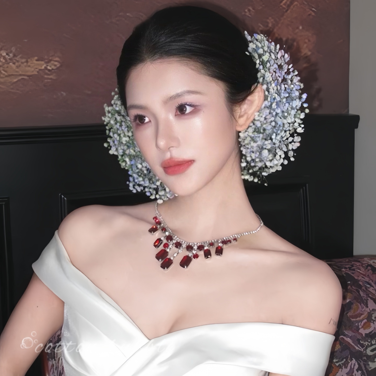 复古红色宝石水滴项链夸张吊坠重工小众颈链新娘轻奢高级感锁骨链