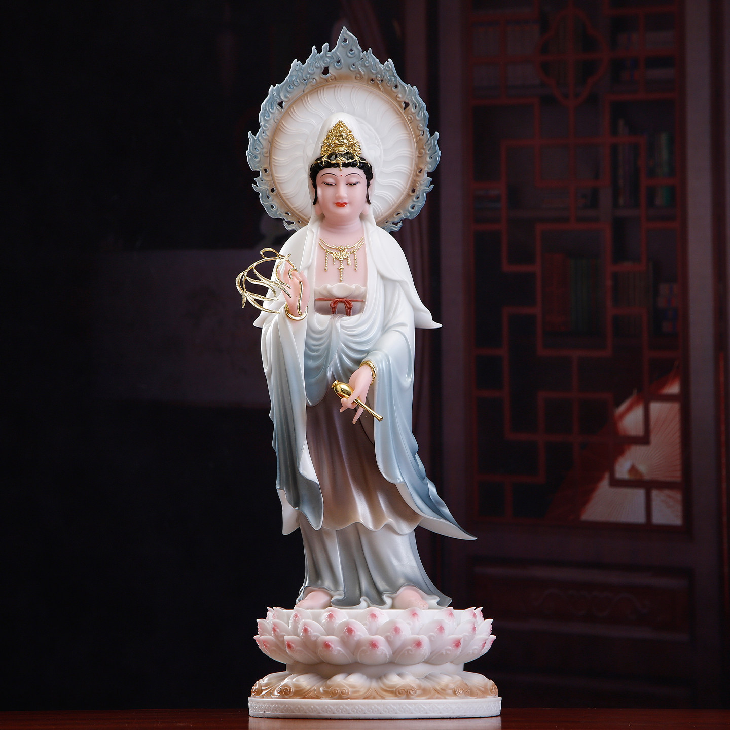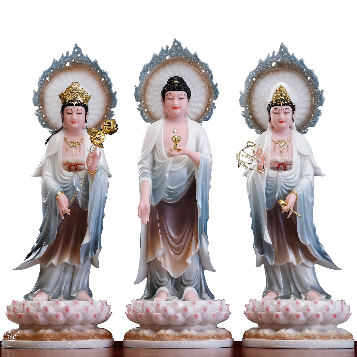 汉白玉西方三圣站像摆件家用供奉阿弥陀佛佛像观世音菩萨神像摆件