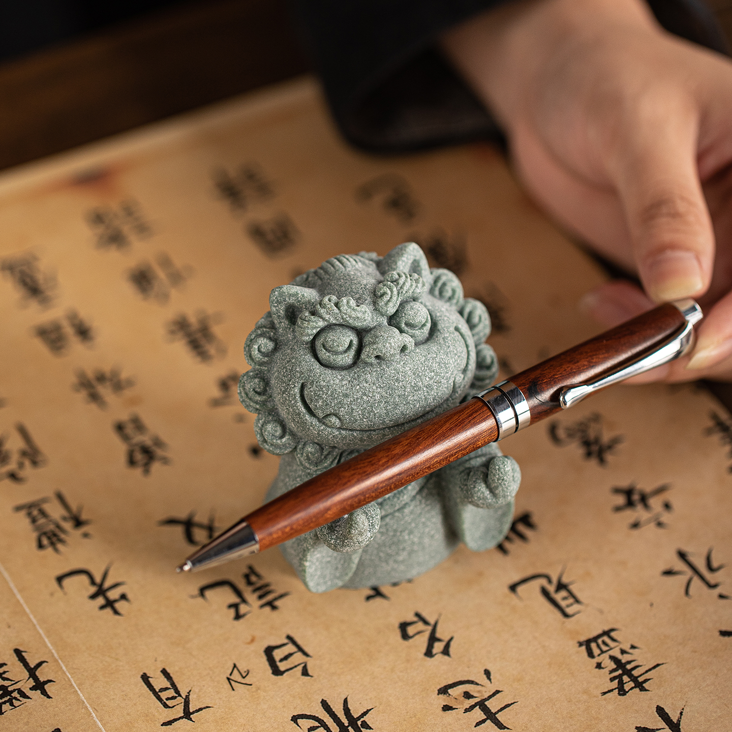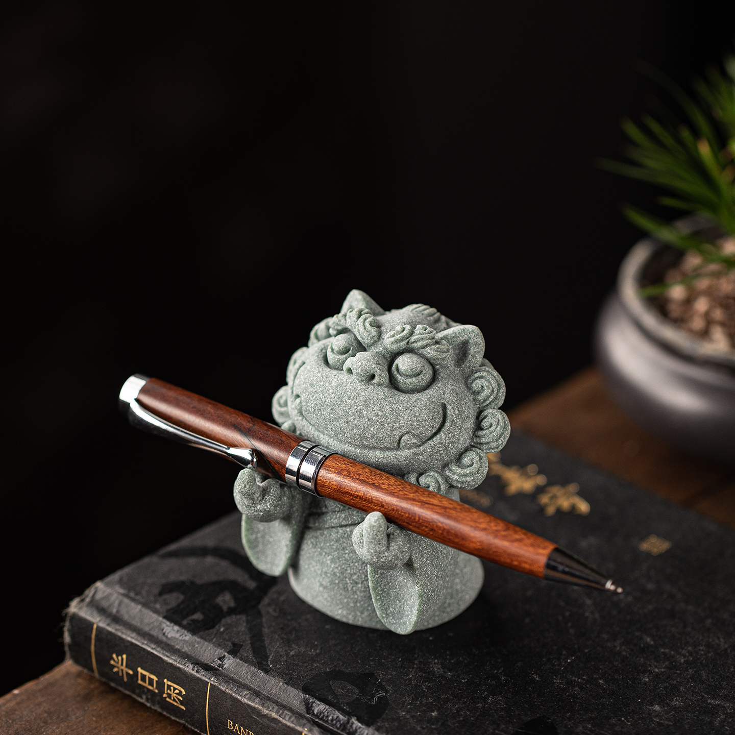 国潮风狮爷练功夫茶宠茶玩摆件创意小狮子笔架笔搁书房镇宅装饰品