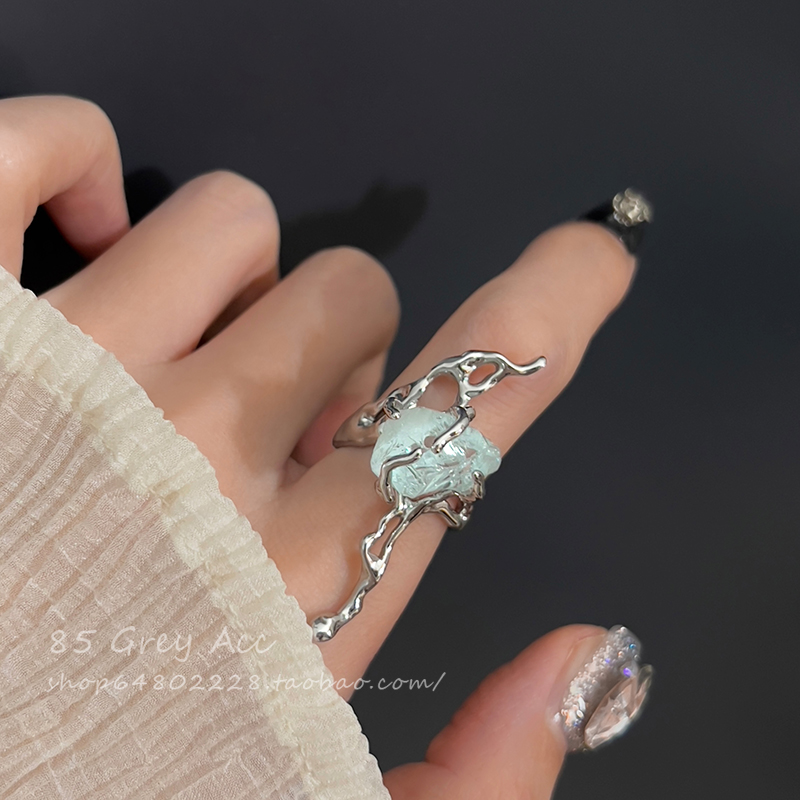 设计感冰川石液态金属戒指女小众高级冷淡风气质食指指环时尚手饰