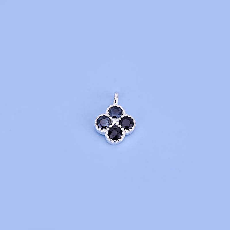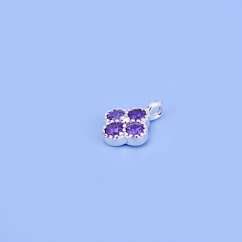 S925纯银 幸运草镶嵌锆石吊坠 手链耳环小挂件 首饰diy配件材料